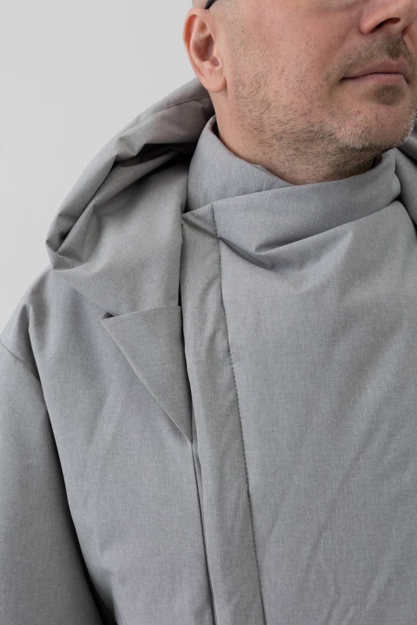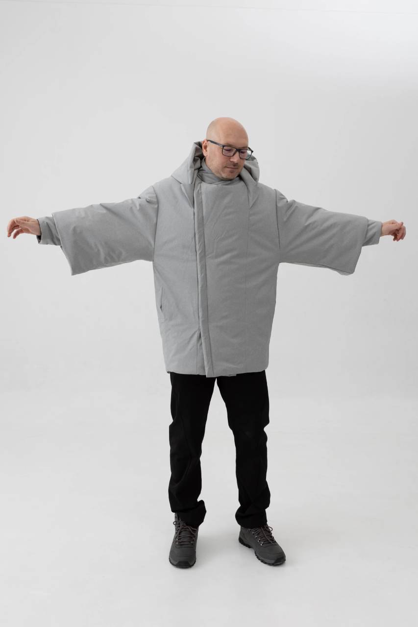 Зименее пальто со съёмным капюшоном и двойными рукавами.