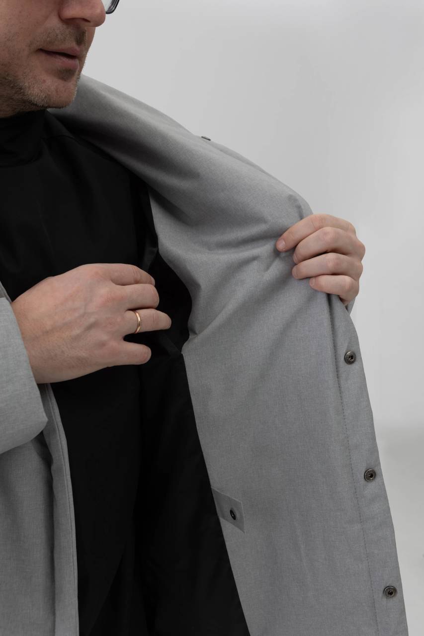 В пальто есть 4 кармана: 2 вертикальных наружных кармана в боковых швах и два внутренних
