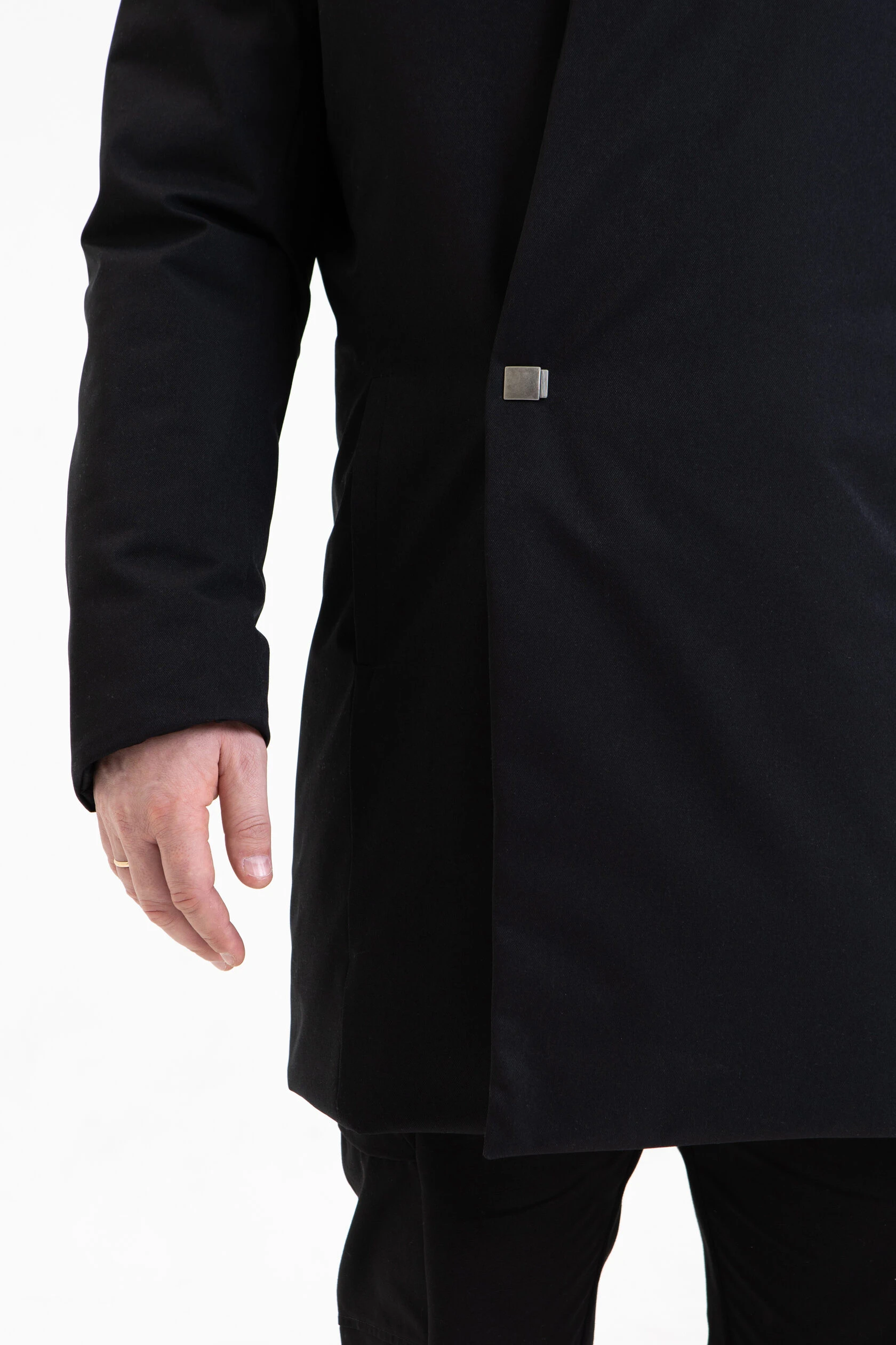 Рукав классической формы с трикотажным манжетом, который защищает от сквозного продувания. Пройма и рукав достаточно свободные, чтобы зимой носить любимый свитер, толстовку или классический костюм.