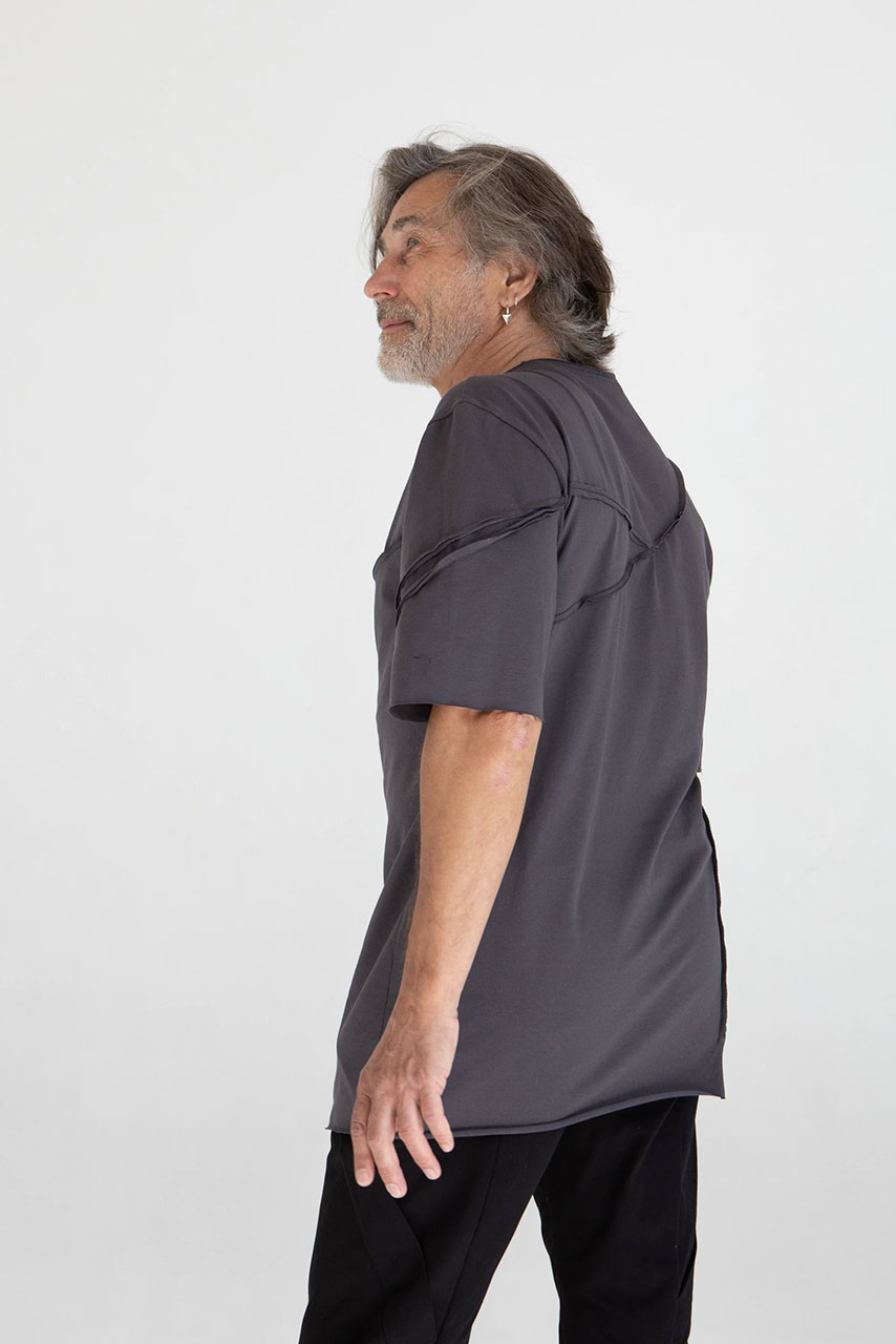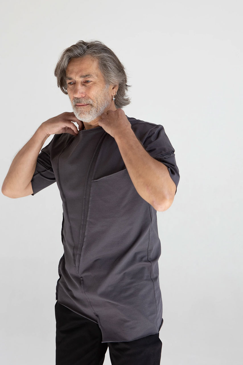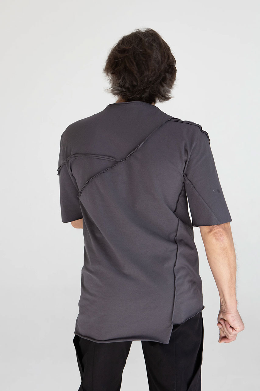 • Асимметричная футболка прямого, свободного силуэта, со свободным рукавом