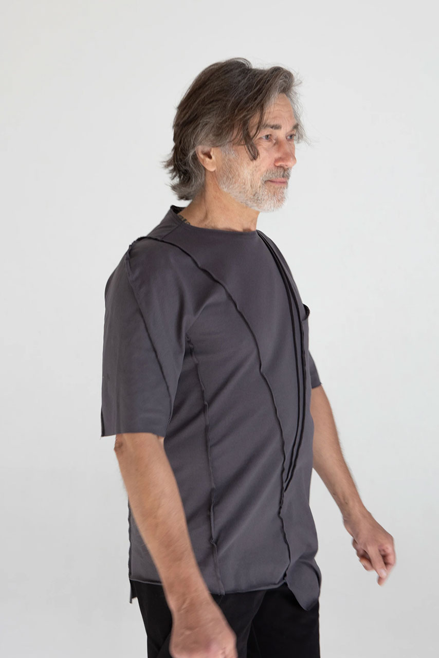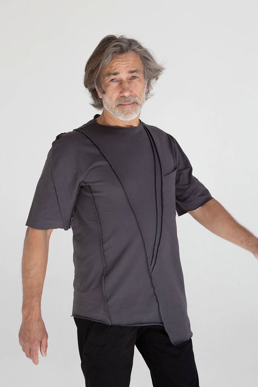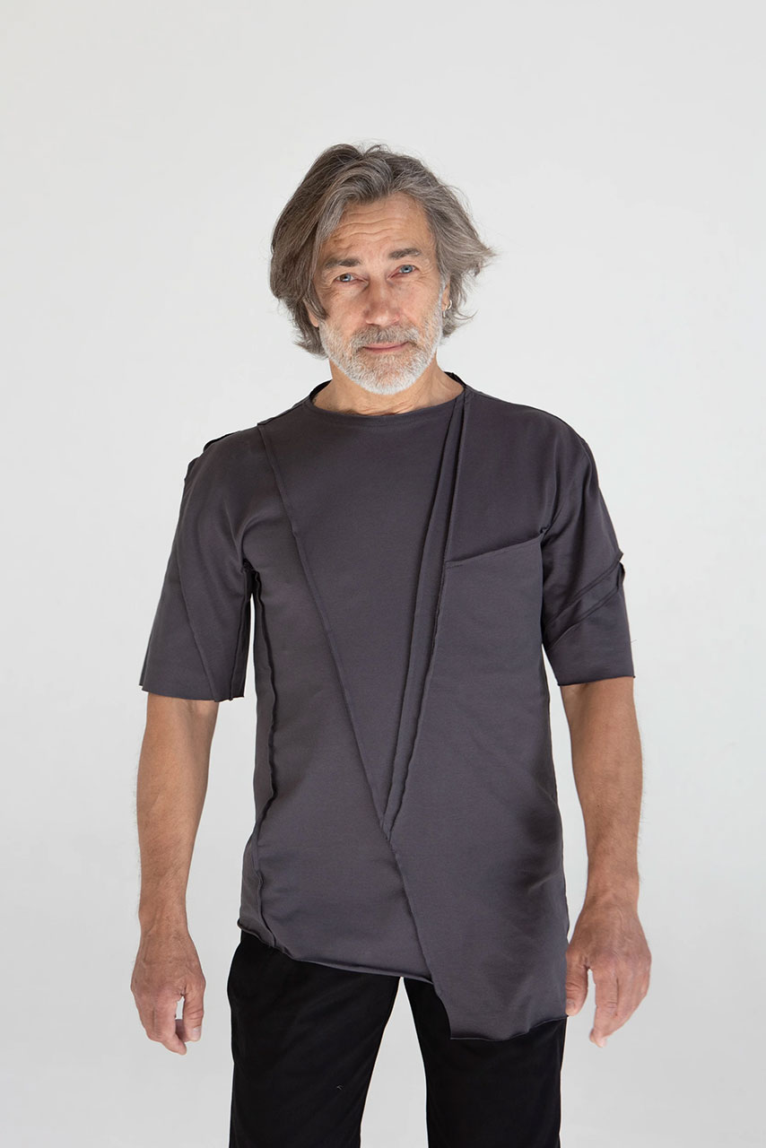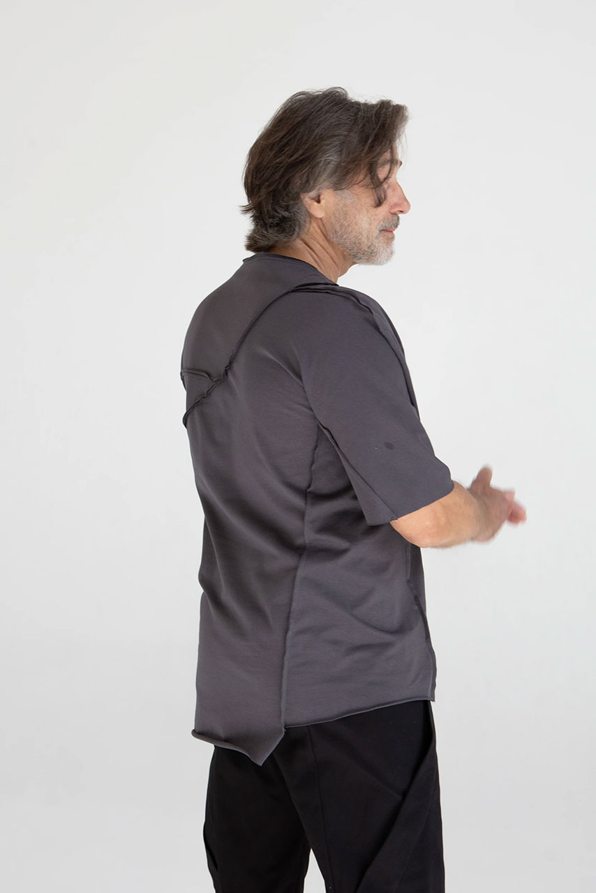 • Асимметричная футболка прямого, свободного силуэта, со свободным рукавом