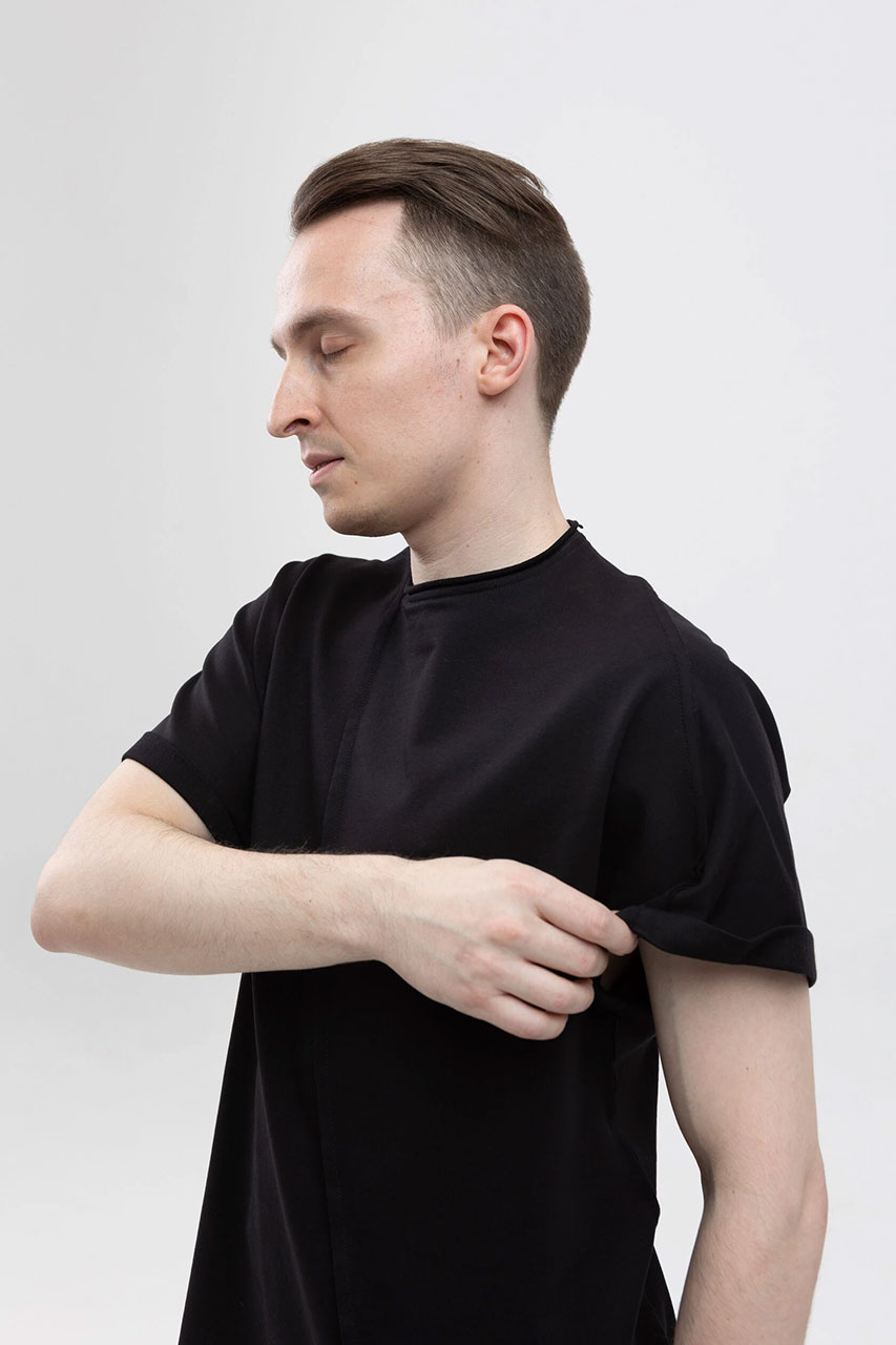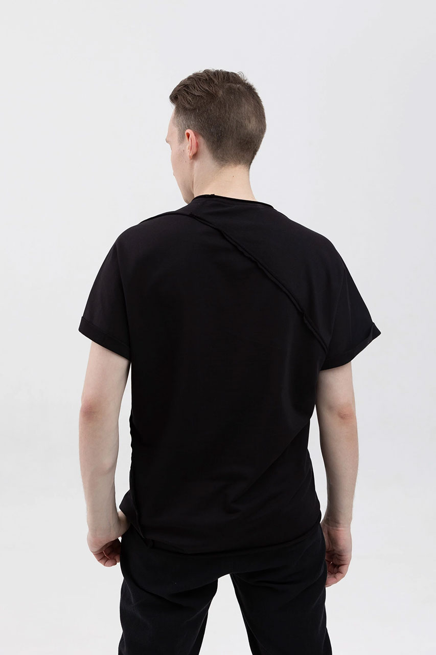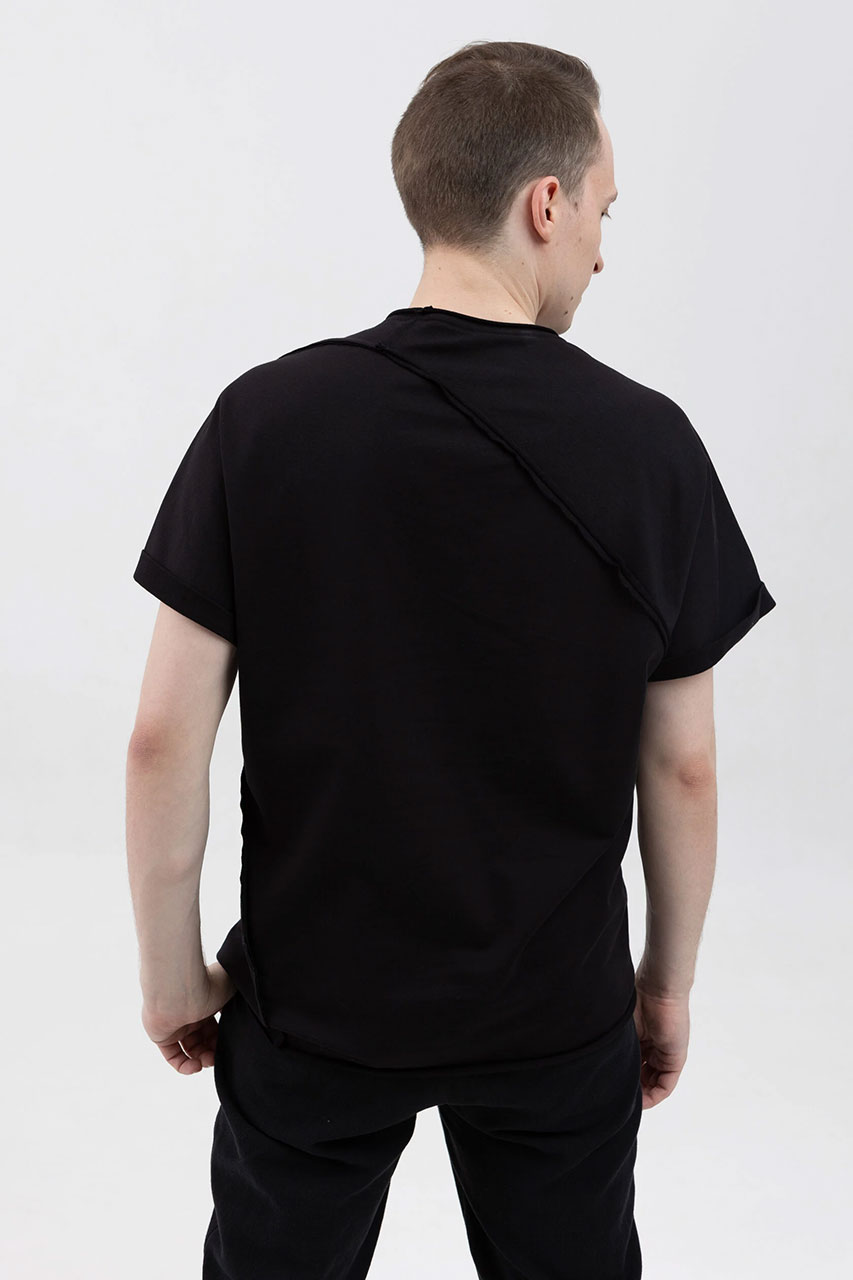 Асимметричная футболка с подвернутыми рукавами черная