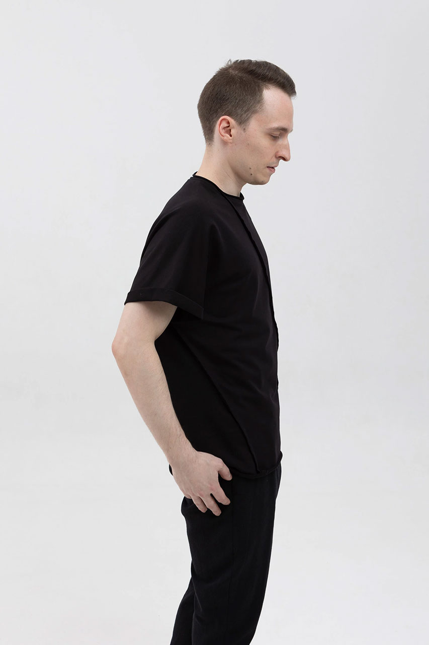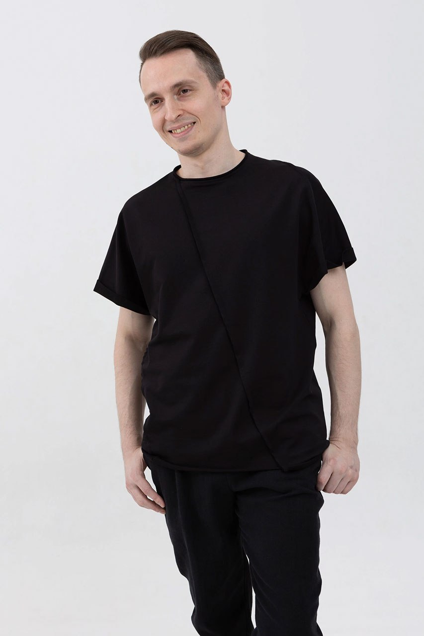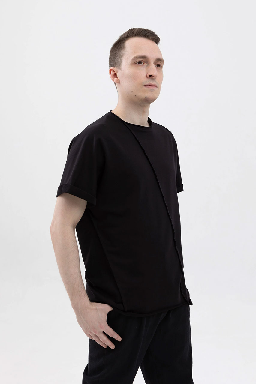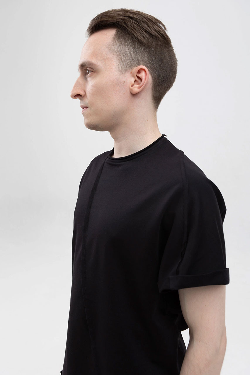 Асимметричная футболка с подвернутыми рукавами черная