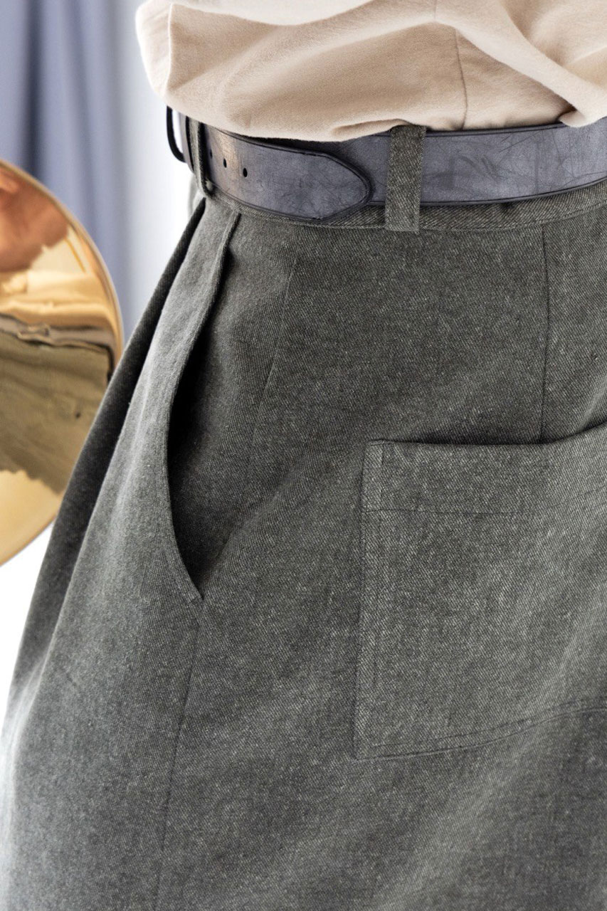 Эта плотная ткань отлично держит форму, формируя выразительные складки при ходьбе