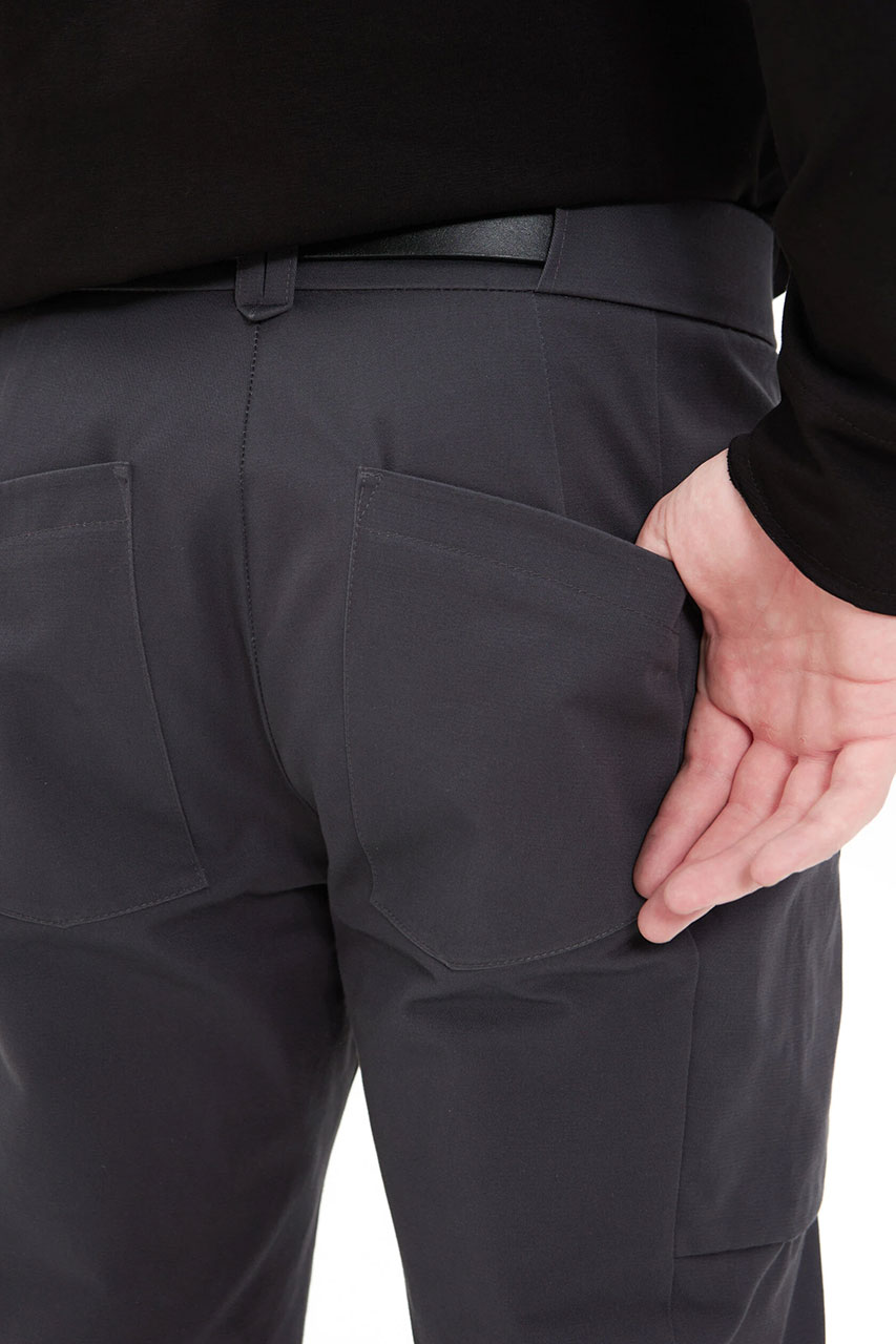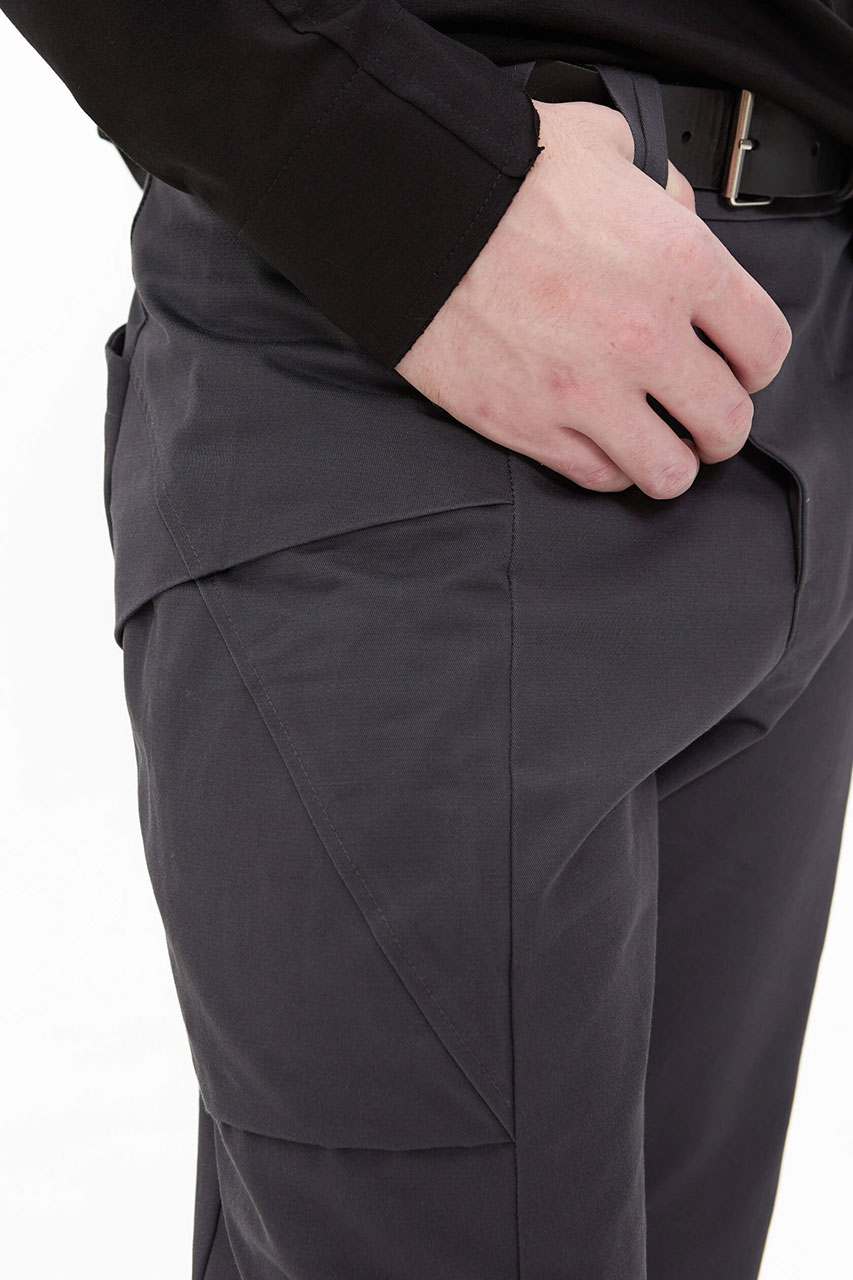 небольшой анатомический объём на коленный выступ. У брюк нет бокового шва — его заменили на