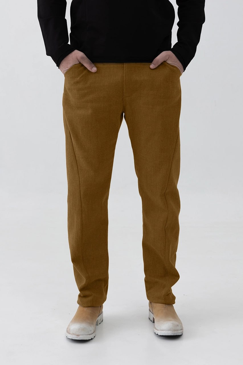 Брюки прямые хлопковые горчичные