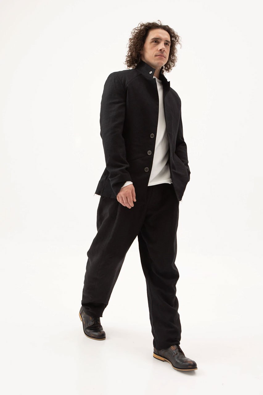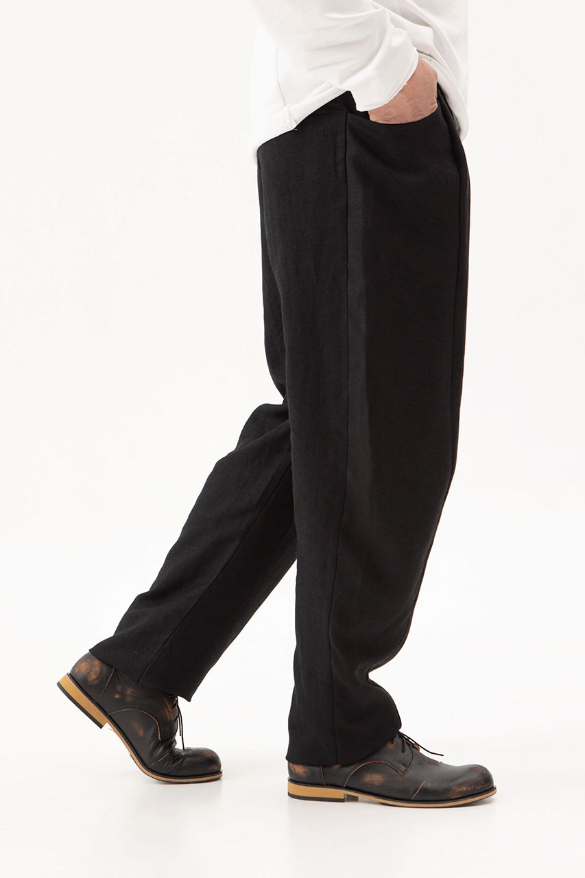 Брюки льняные свободные черные