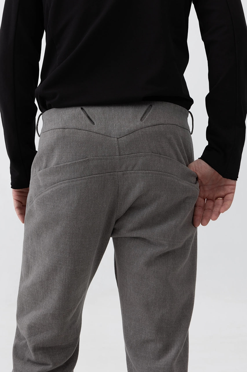 Сзади двойная кокетка для максимально анатомичного прилегания к телу. Боковые швы на штанинах