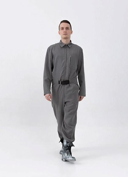 Легкий серый комбинезон на молнии