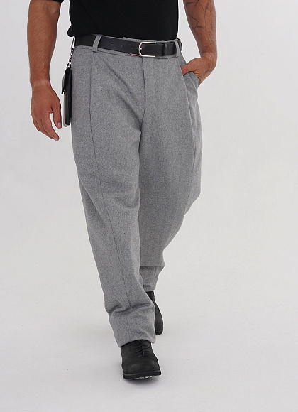 Шерстяные брюки со складкой темно‑серые