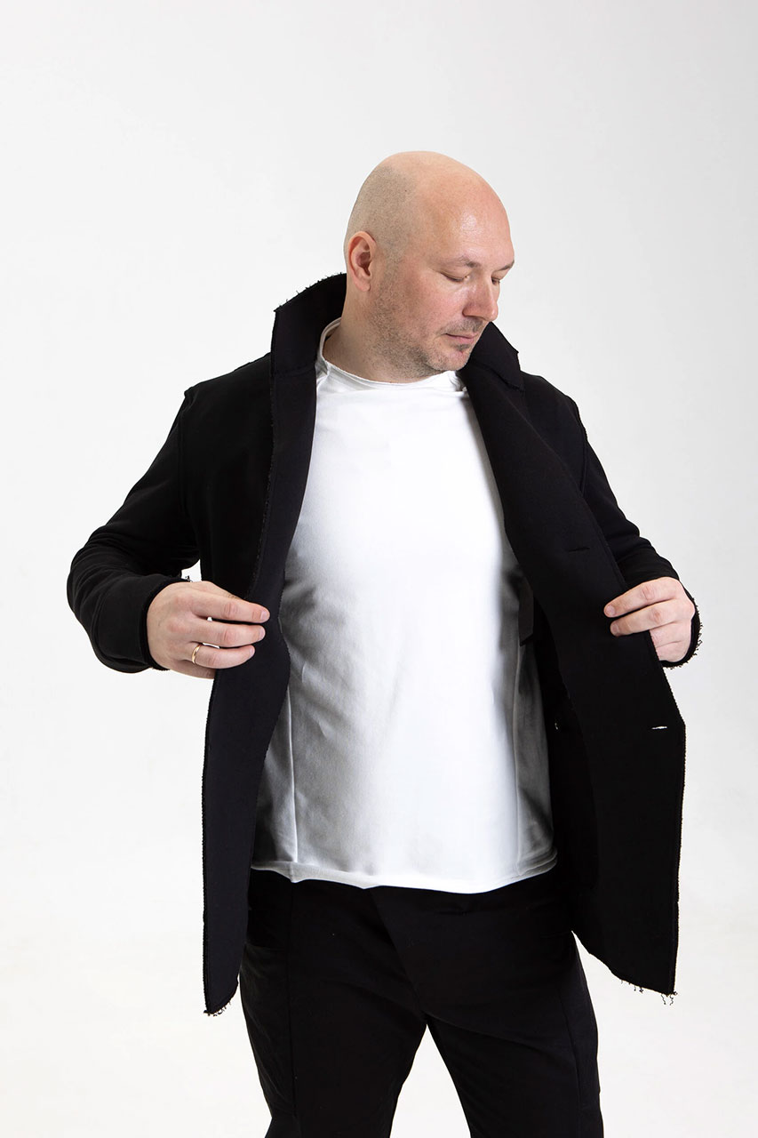 • Жакет из плотного трикотажа, приталенный, полуприлегающего силуэта,
