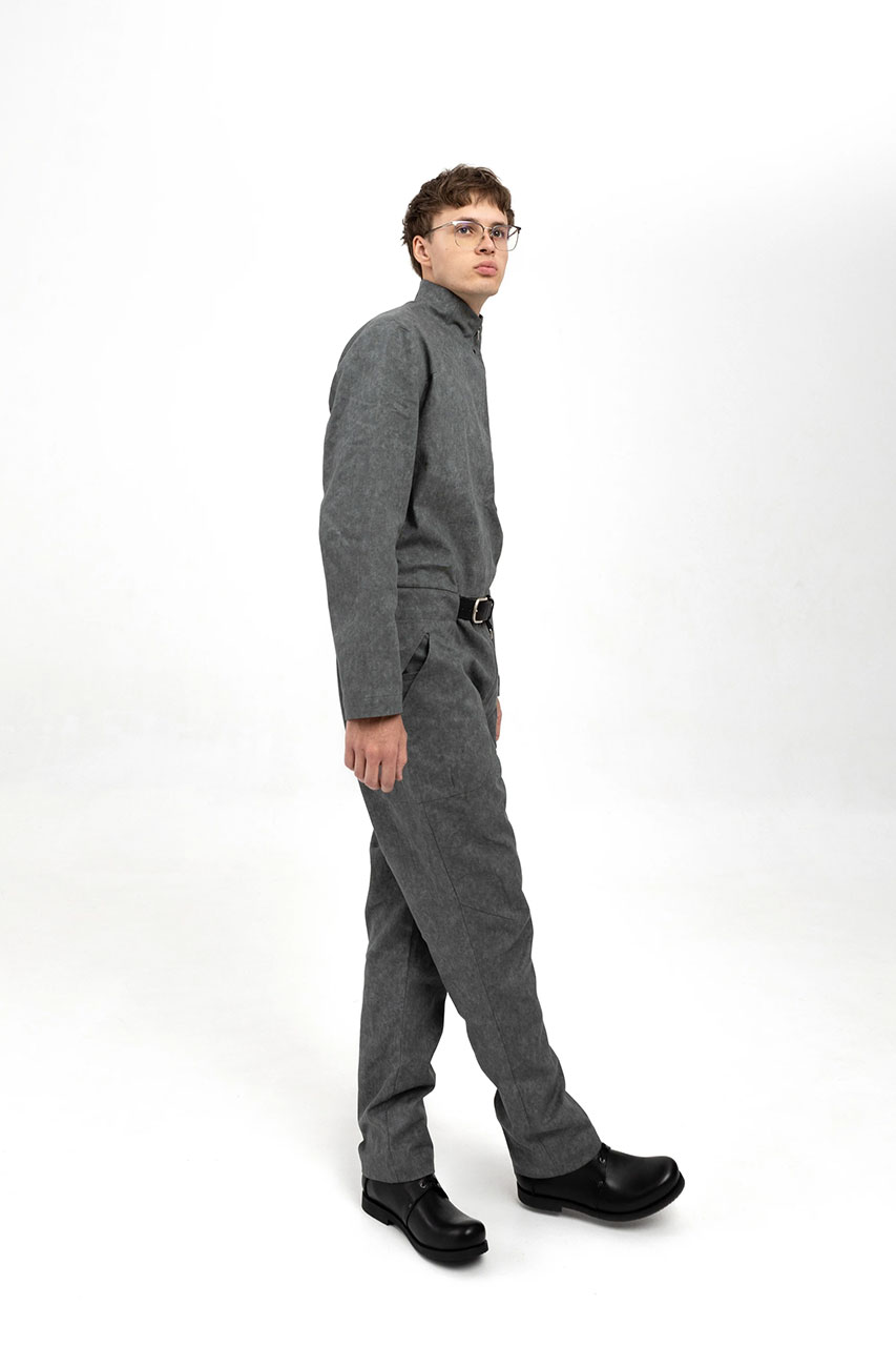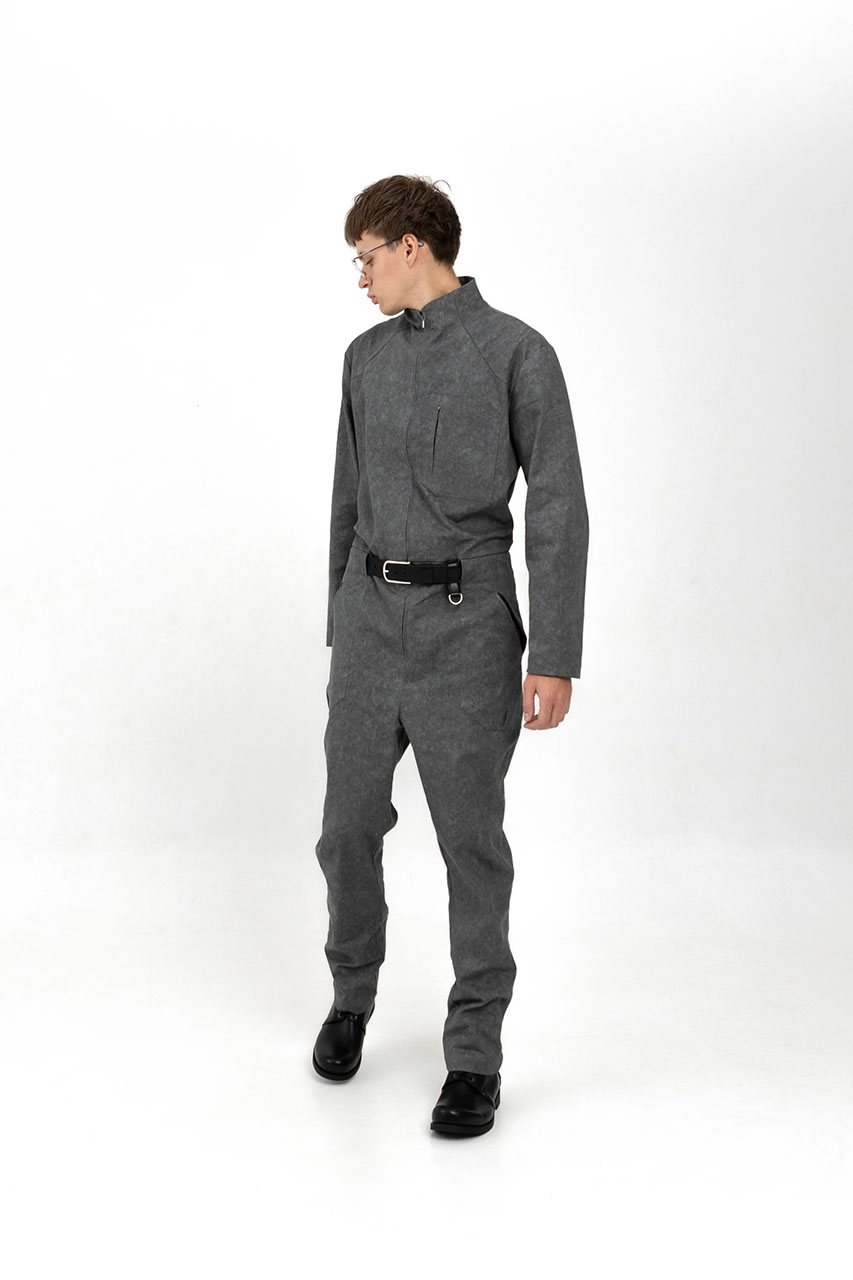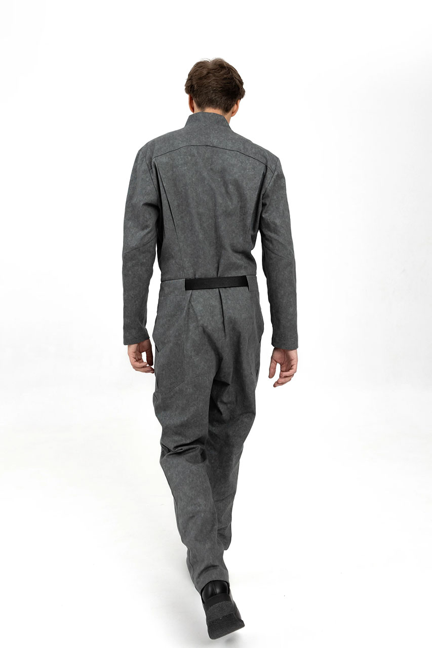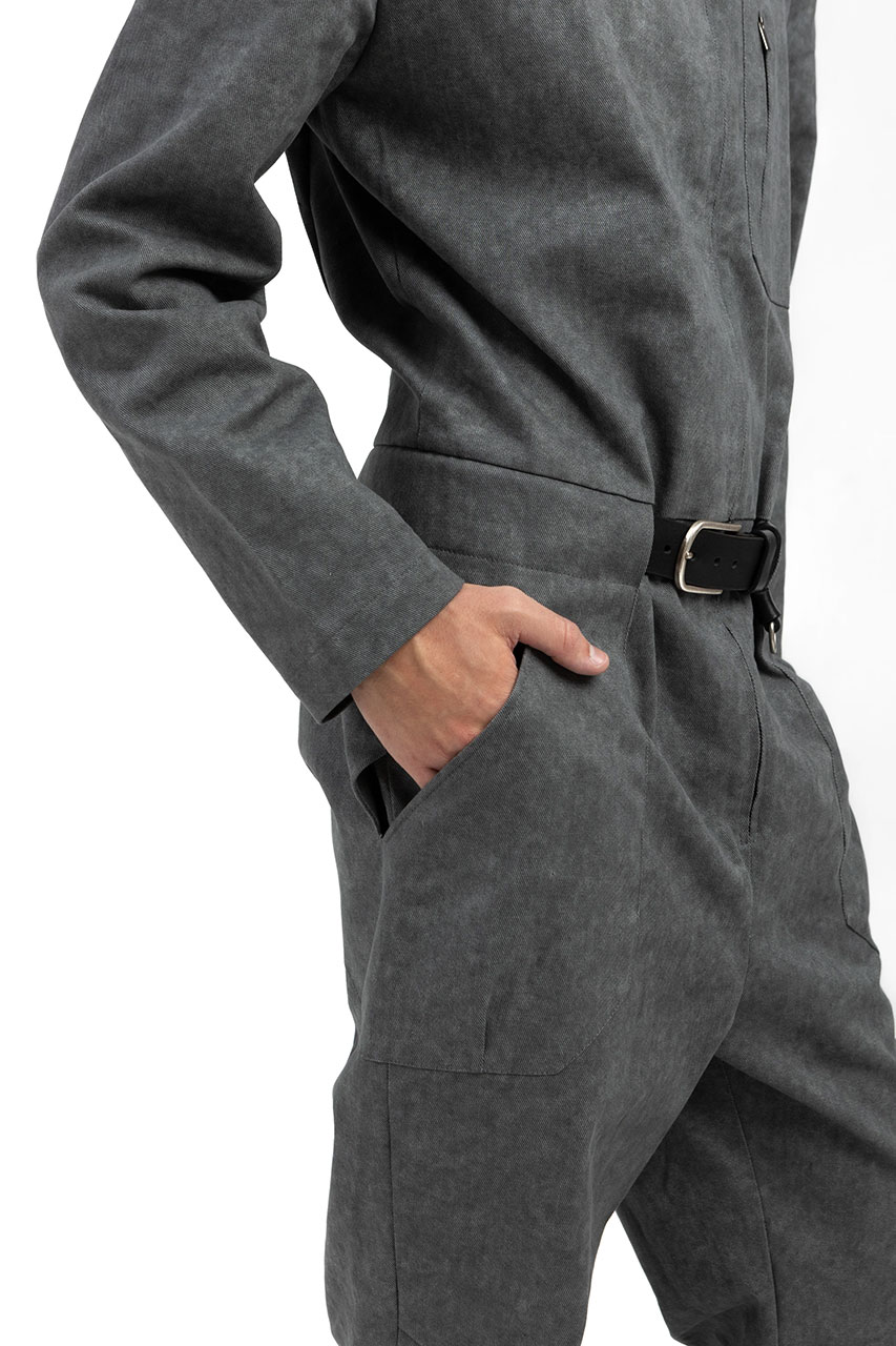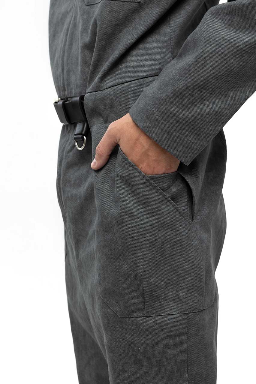 Джинсовый серый комбинезон на молнии