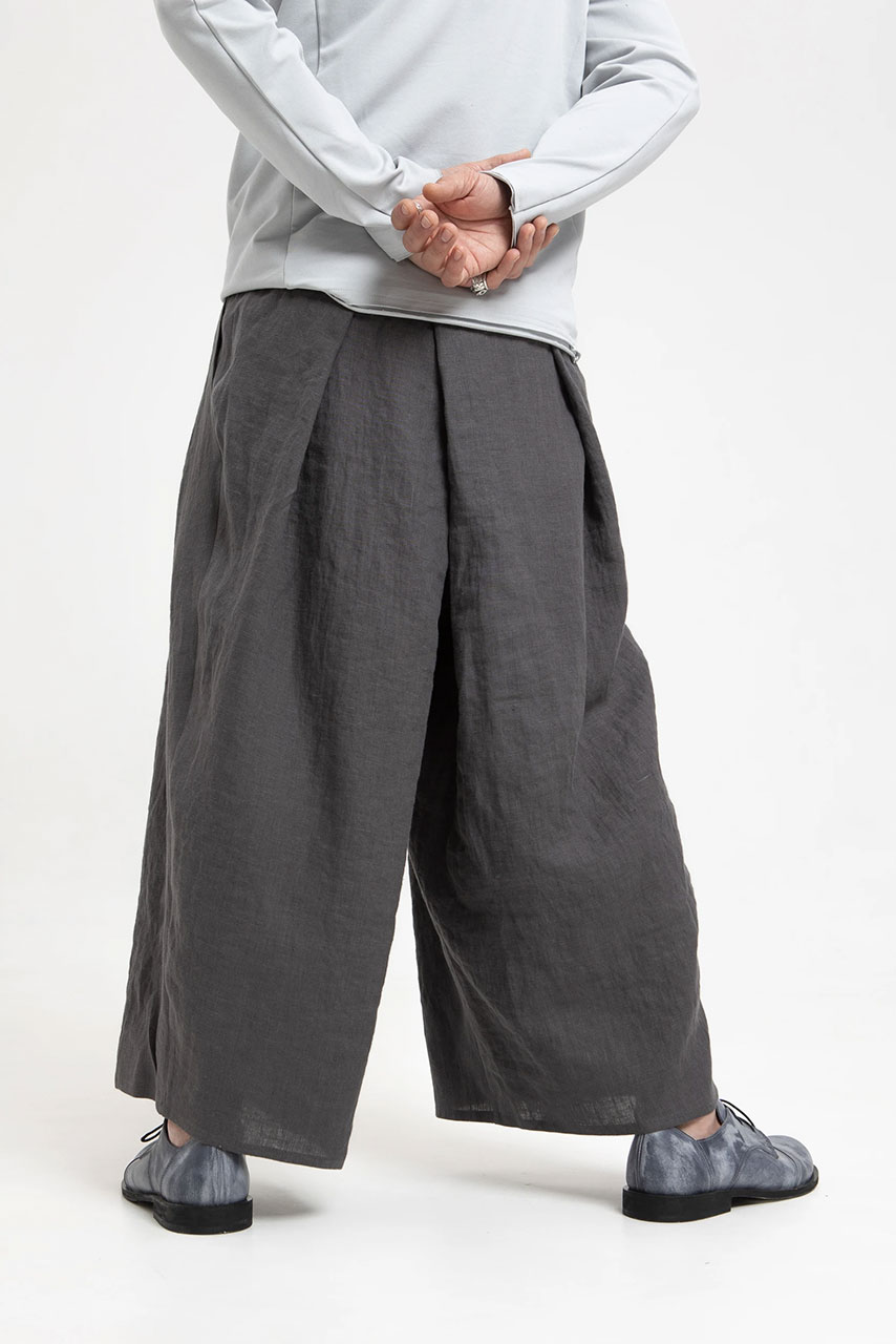 Брюки хакама — широкие, свободные, укороченные брюки с глубокими складками.