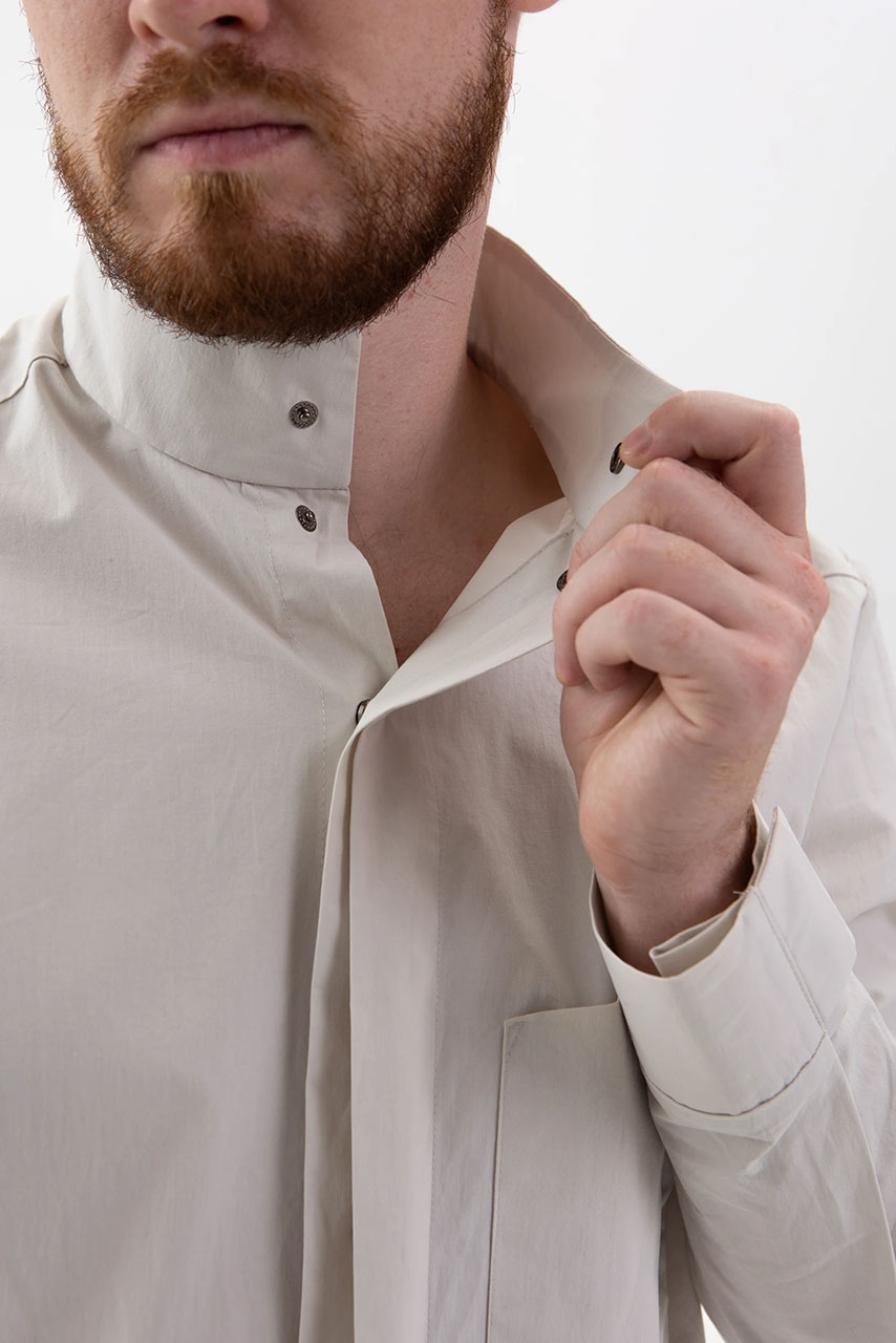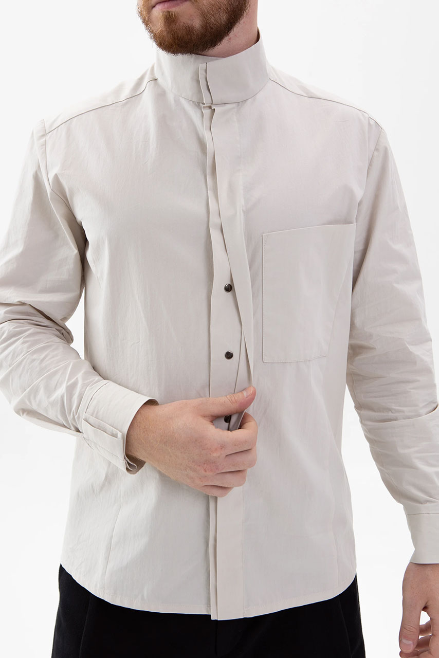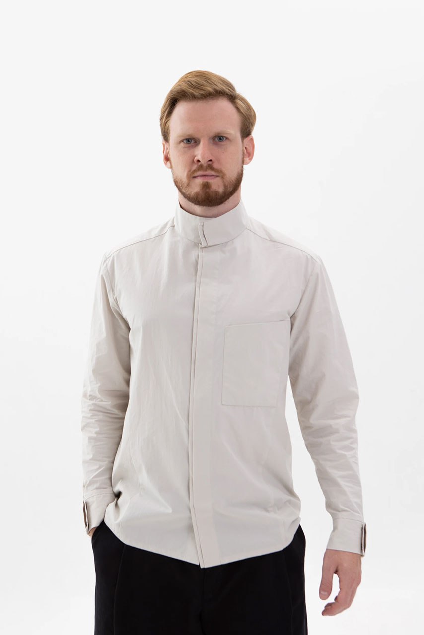 • Строгая и лаконичная рубашка — как будто бумажная, но на самом деле из мягкого,