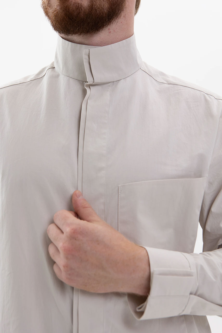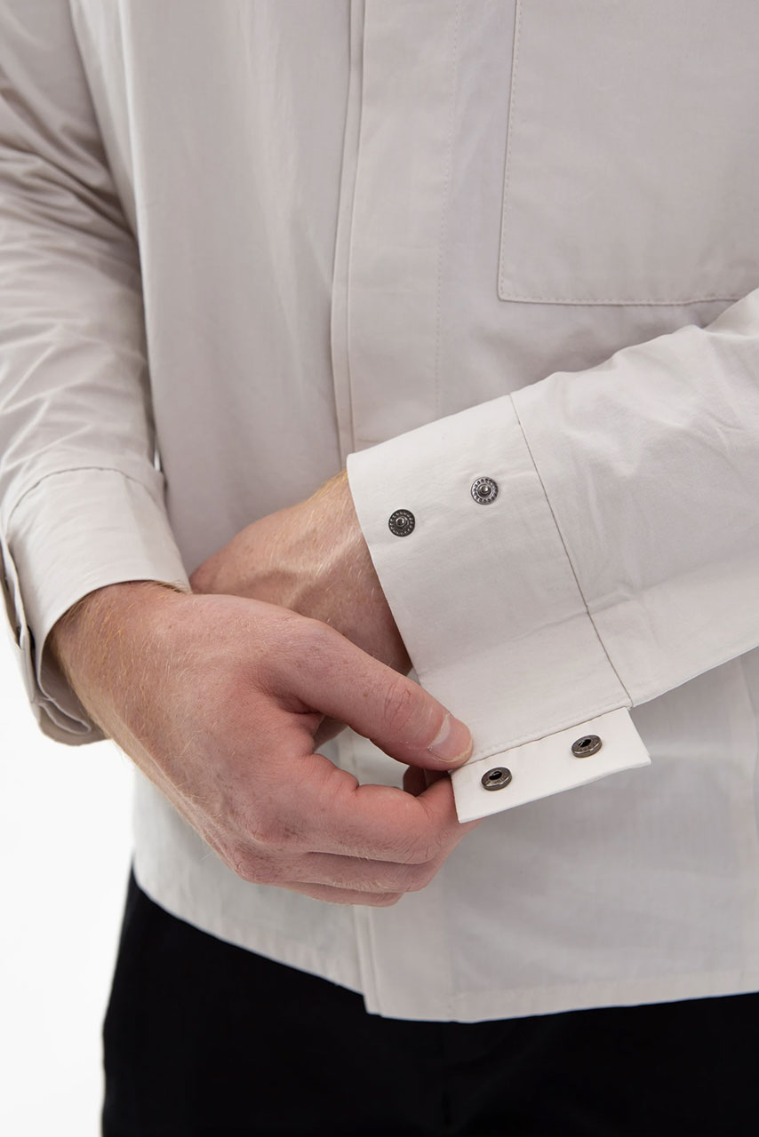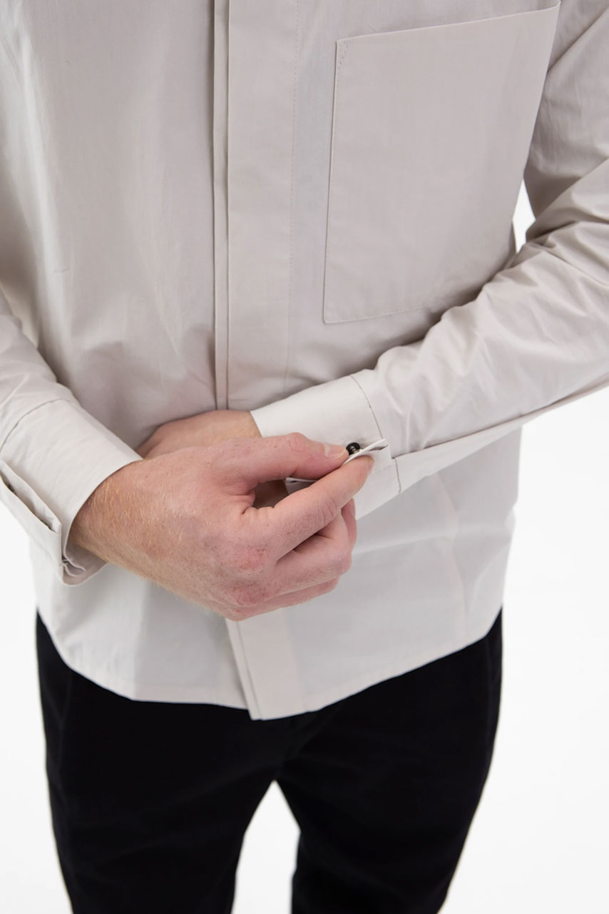 • Строгая и лаконичная рубашка — как будто бумажная, но на самом деле из мягкого,