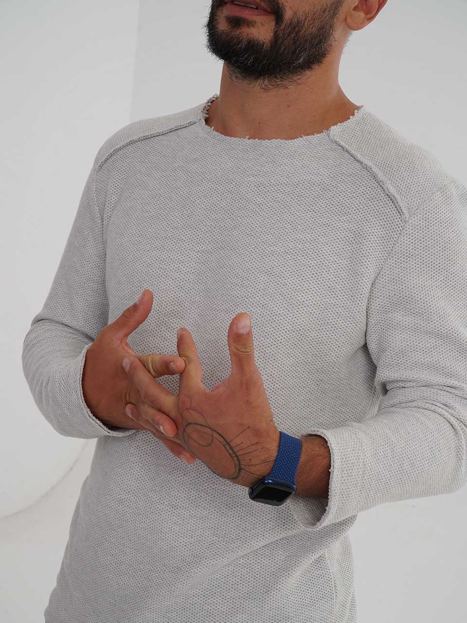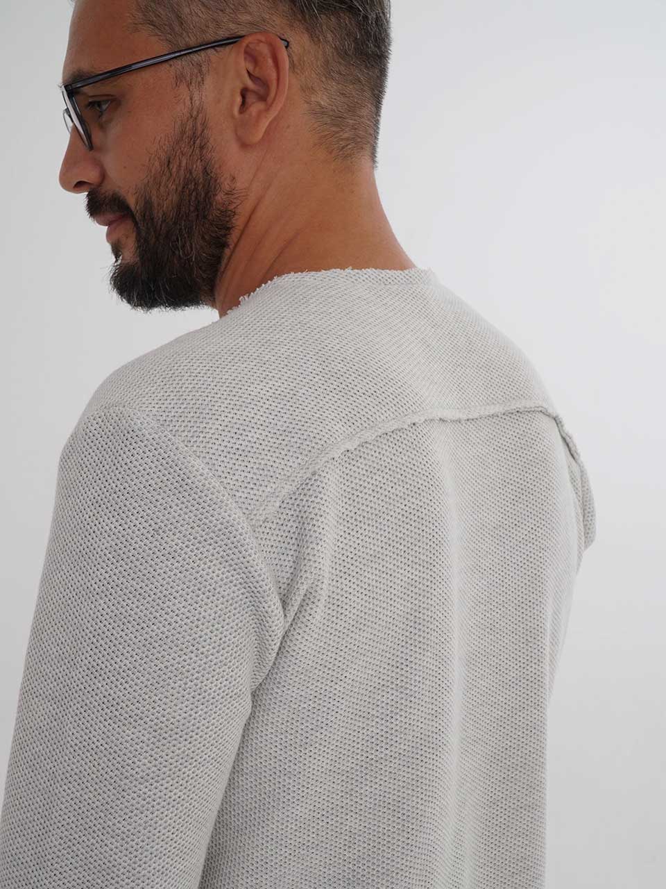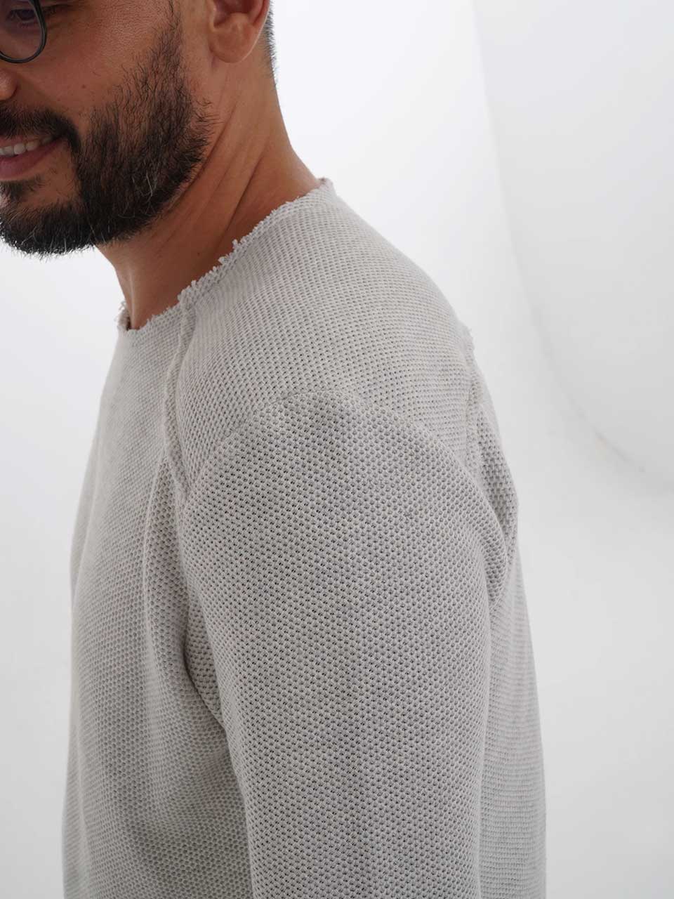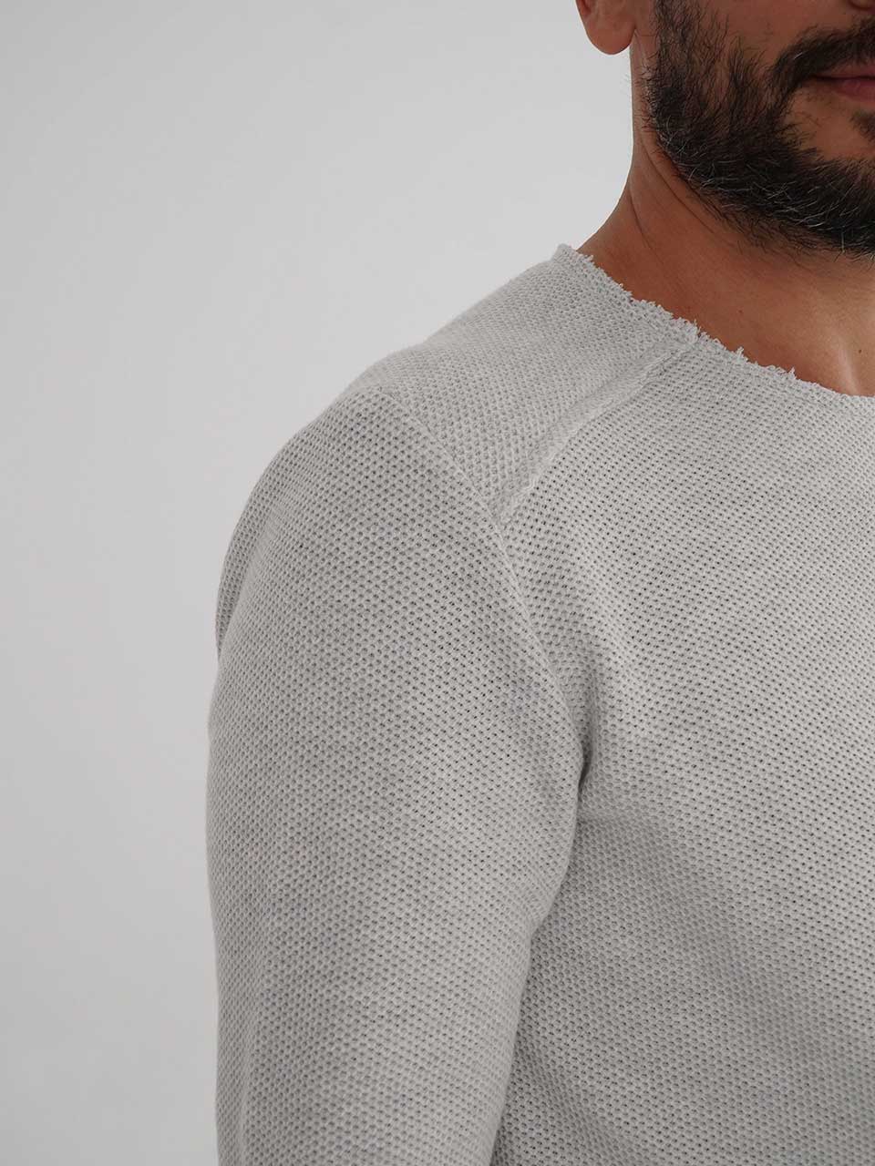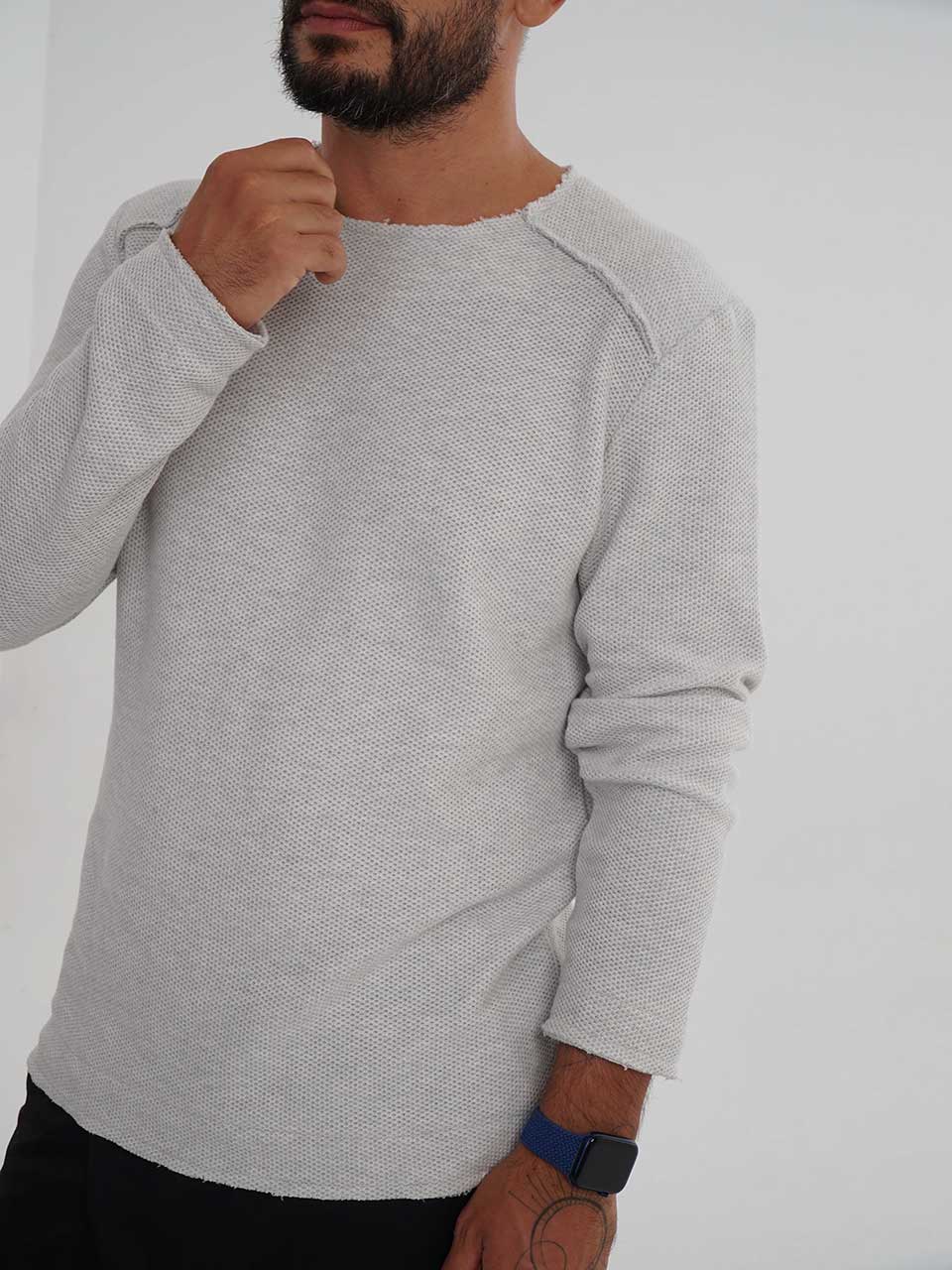 Края свитера просто отрезаны. Часть ниточек упала во время пошива,