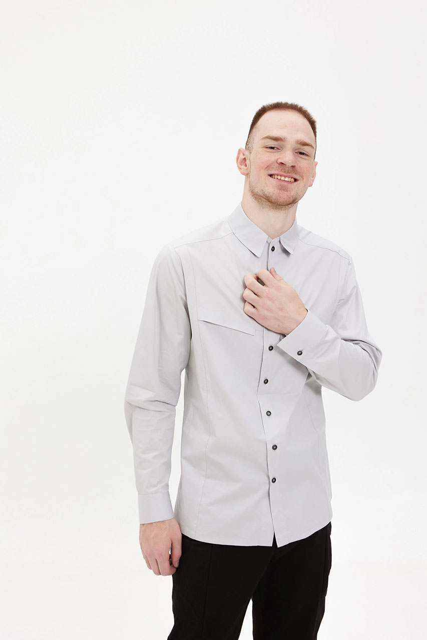 как это обычно бывает у рубашек, — именно этот нюанс придаёт модели