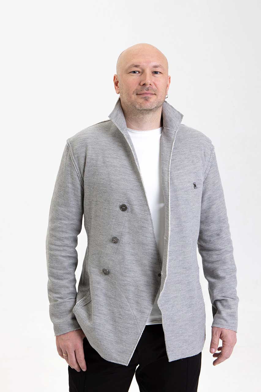Серый трикотажный жакет на пуговицах