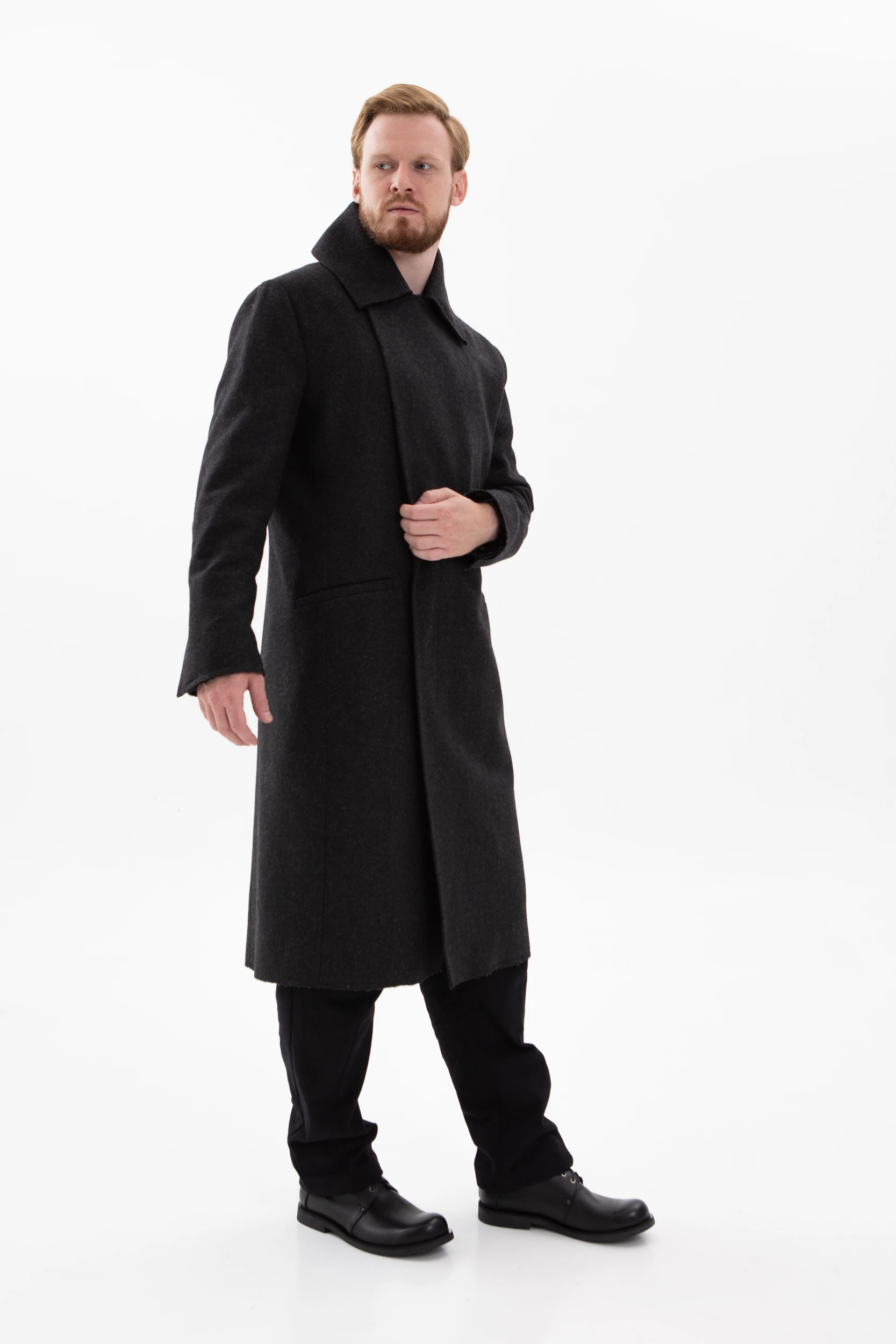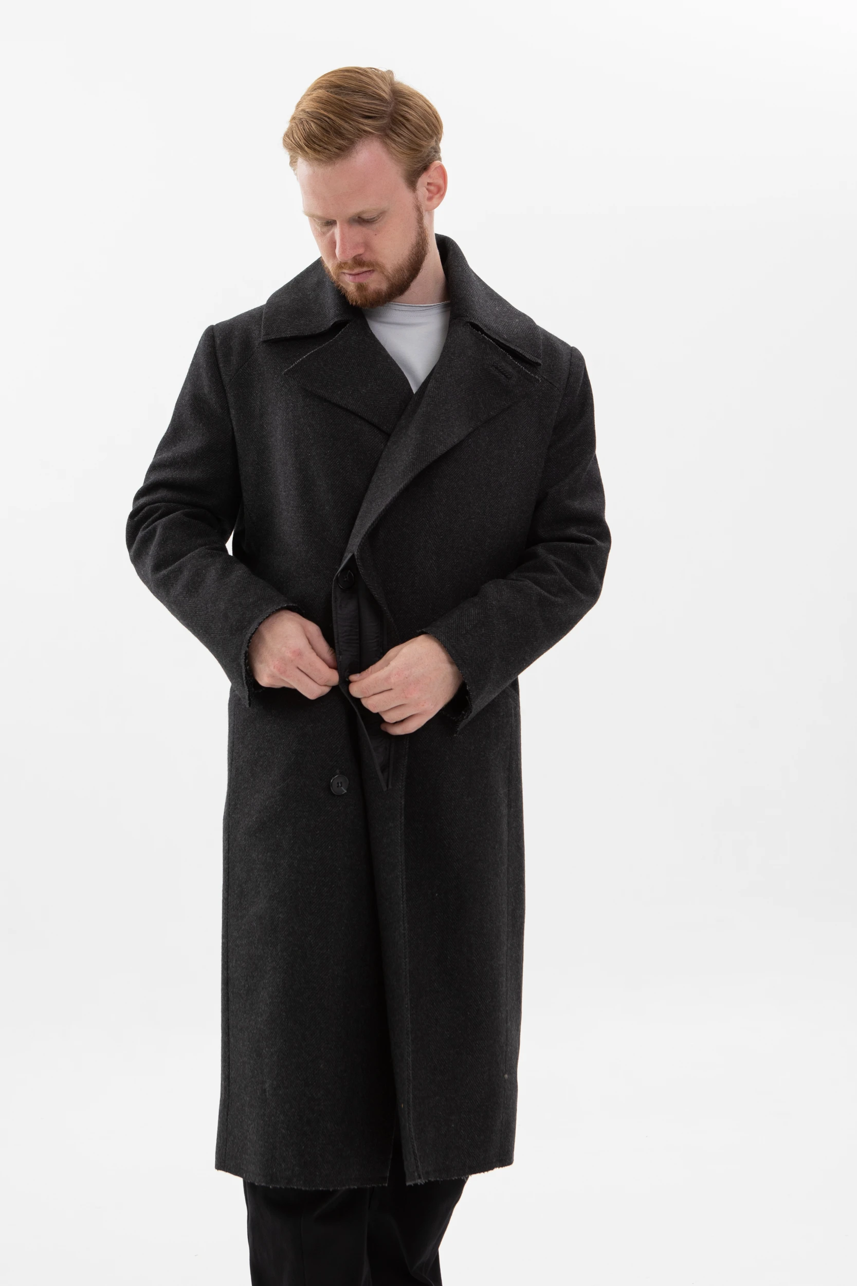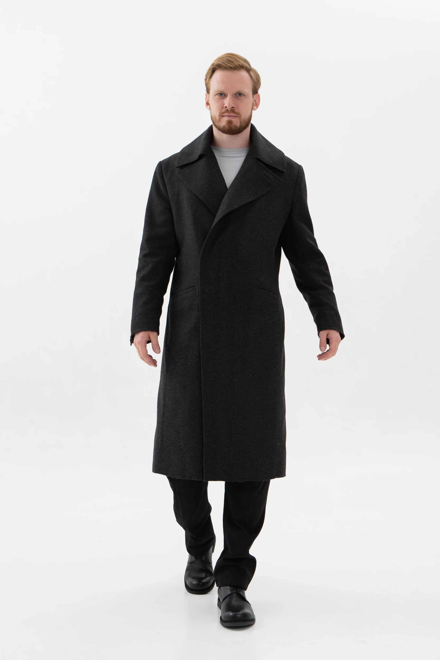 • Классическое элегантное пальто с нескучными деталями. Необработанные края манжетов, низа пальто и лацканов воротника делают его не таким строгим и слегка хулиганским.