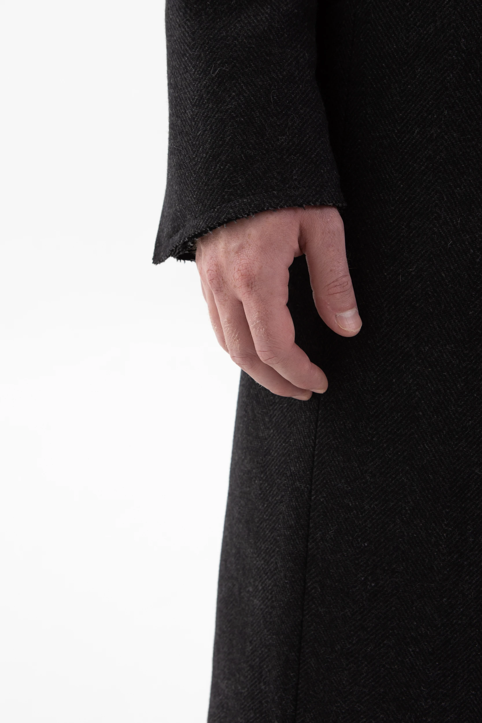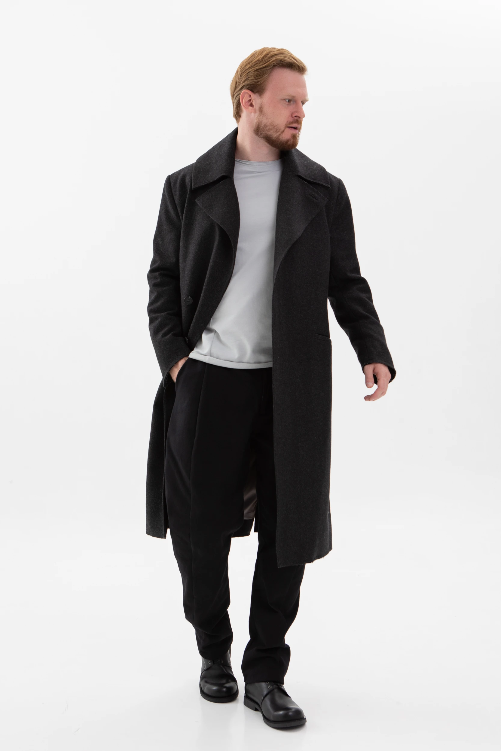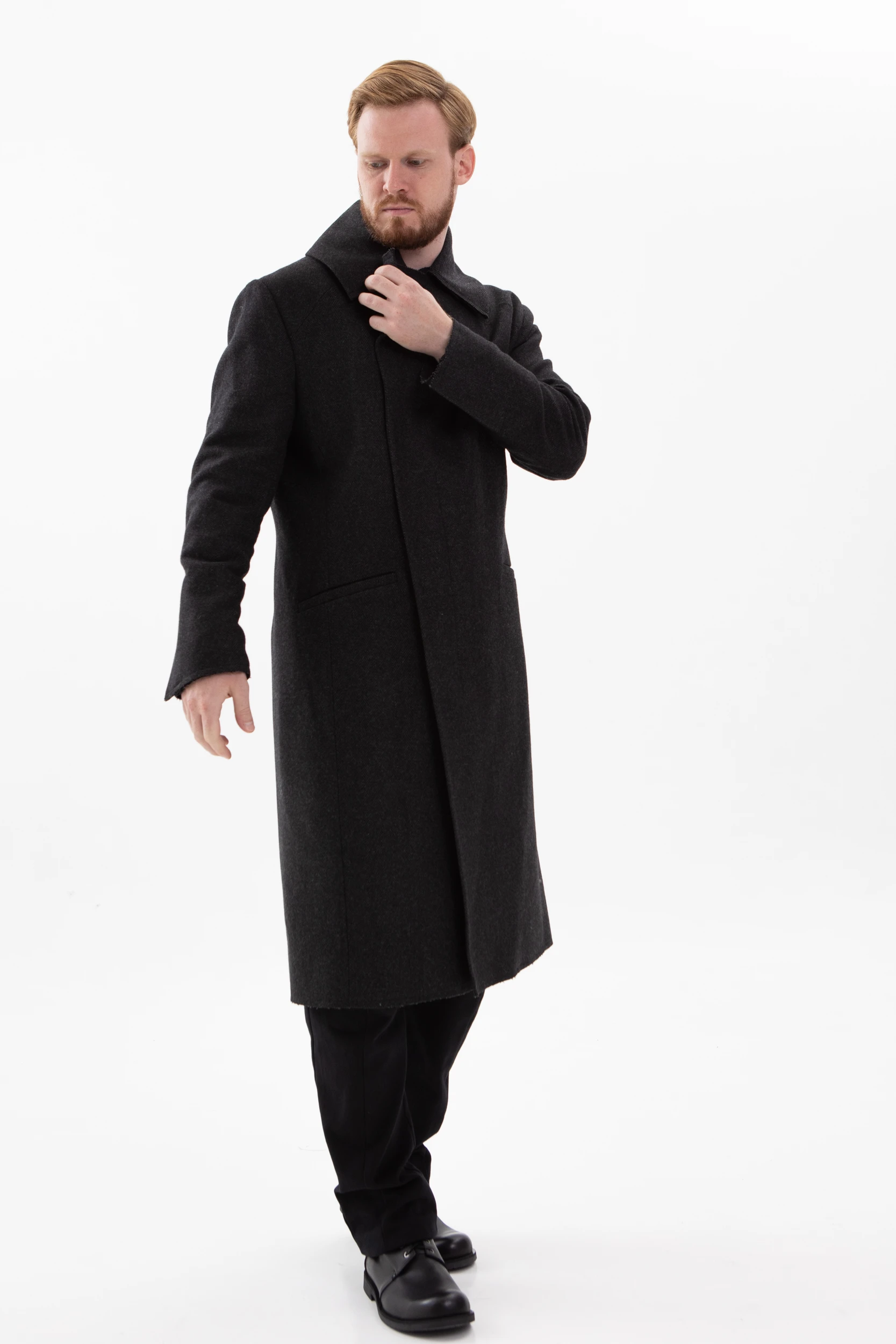 • Классическое элегантное пальто с нескучными деталями. Необработанные края манжетов, низа пальто и лацканов воротника делают его не таким строгим и слегка хулиганским.