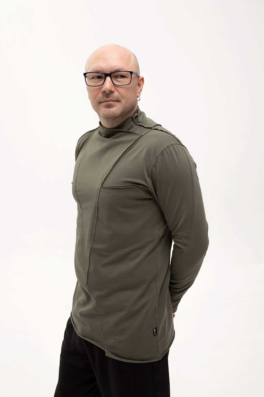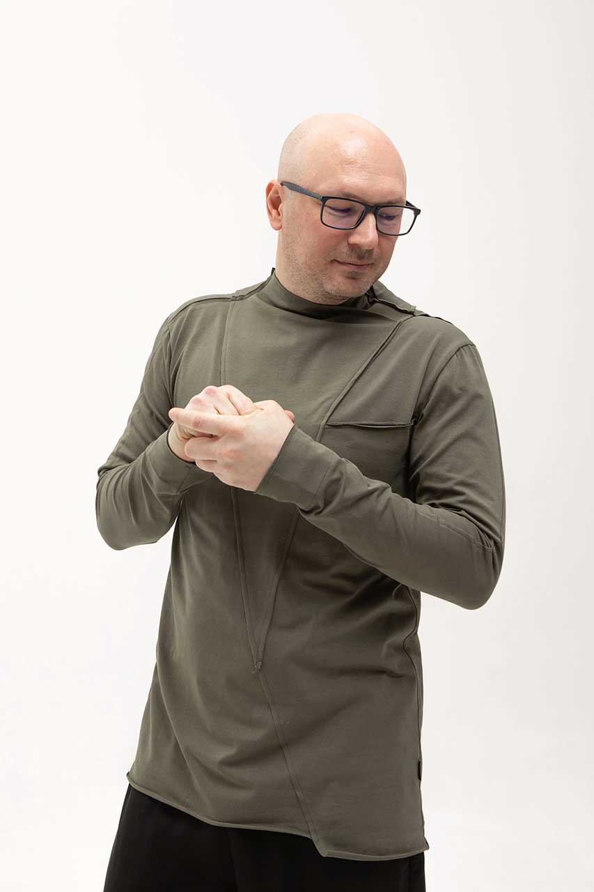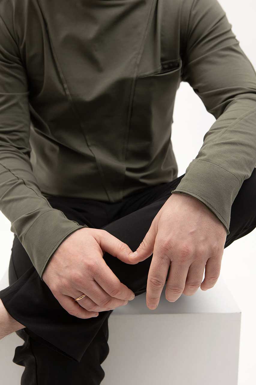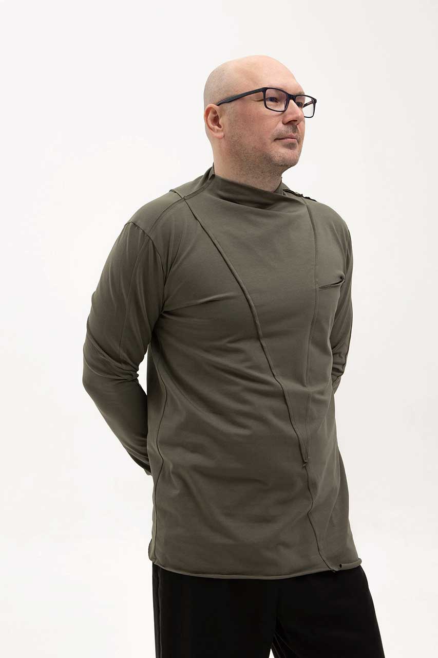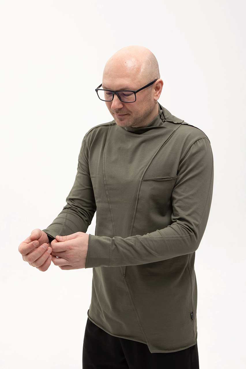 Асимметричная футболка с длинным рукавом зеленая