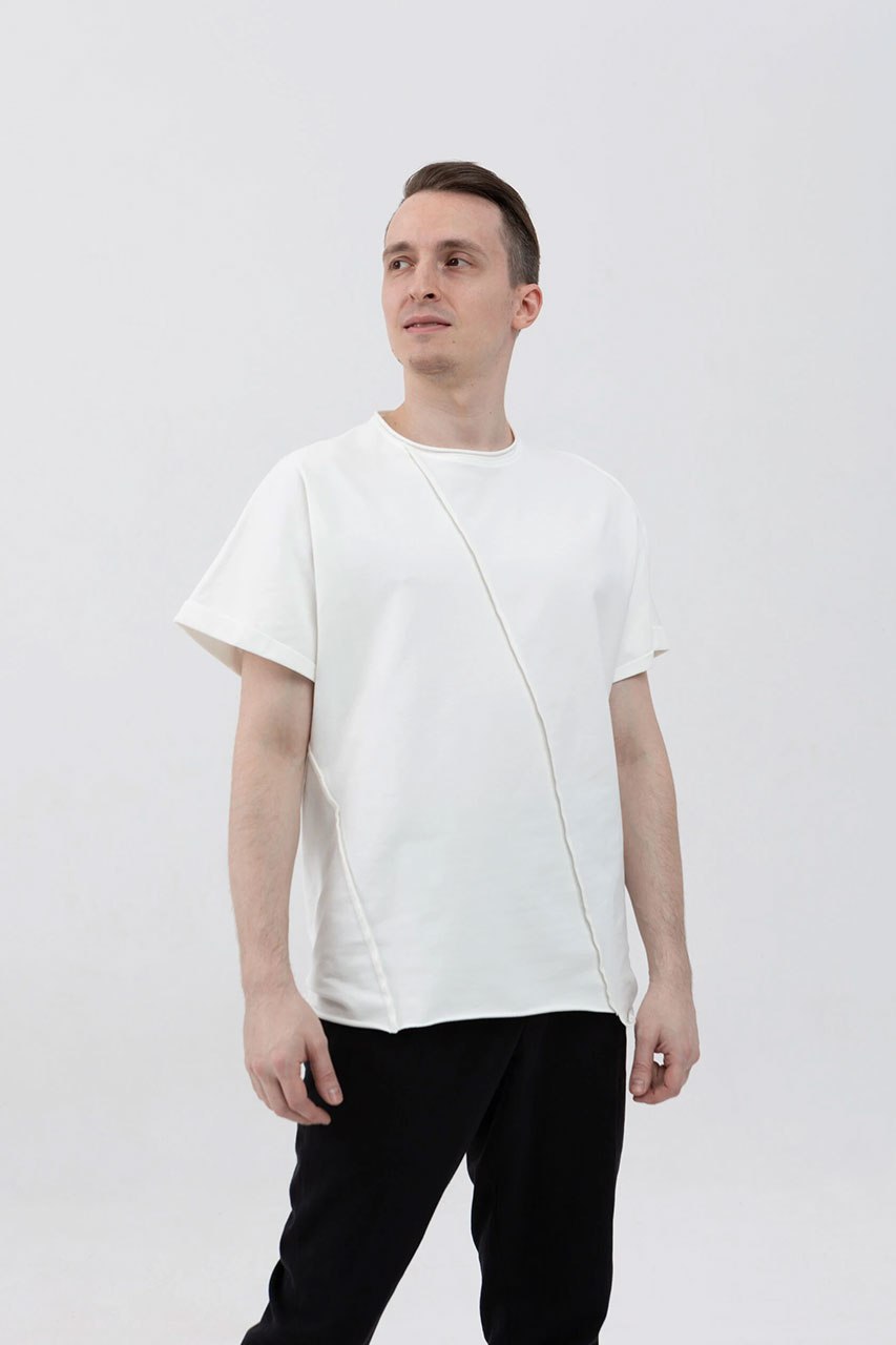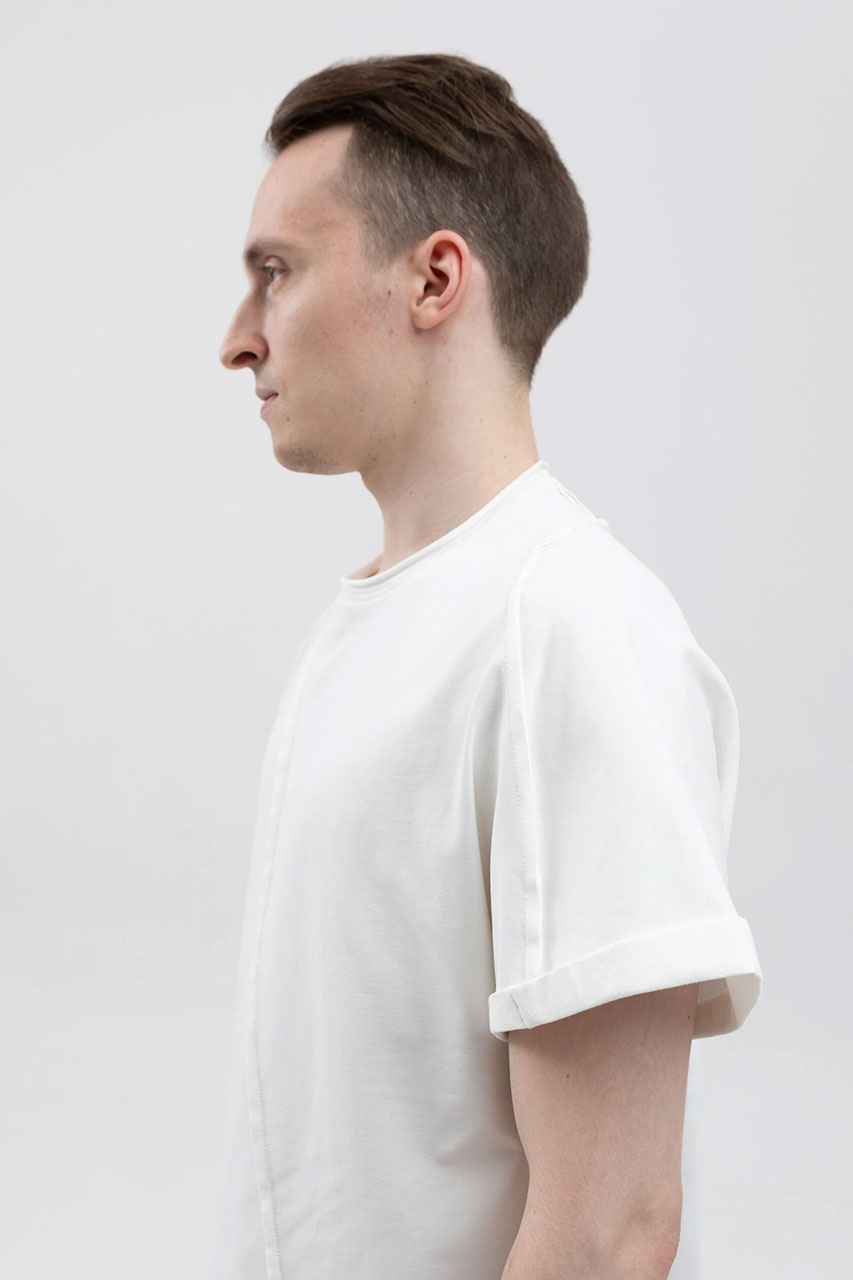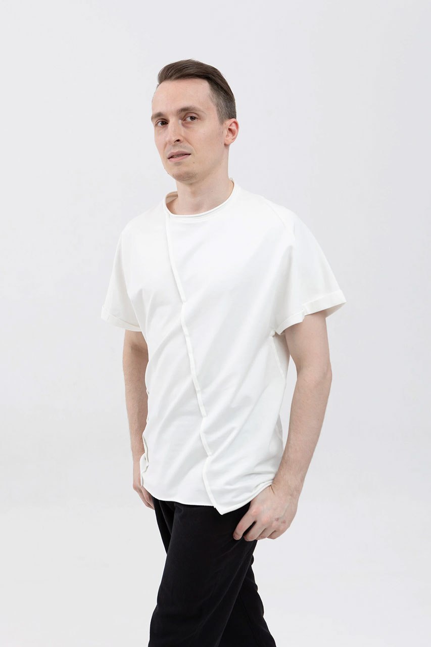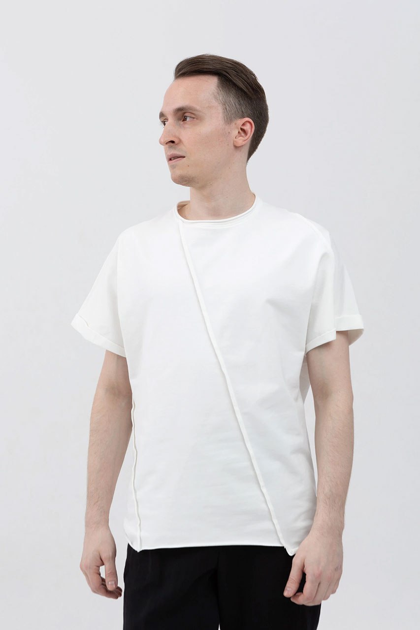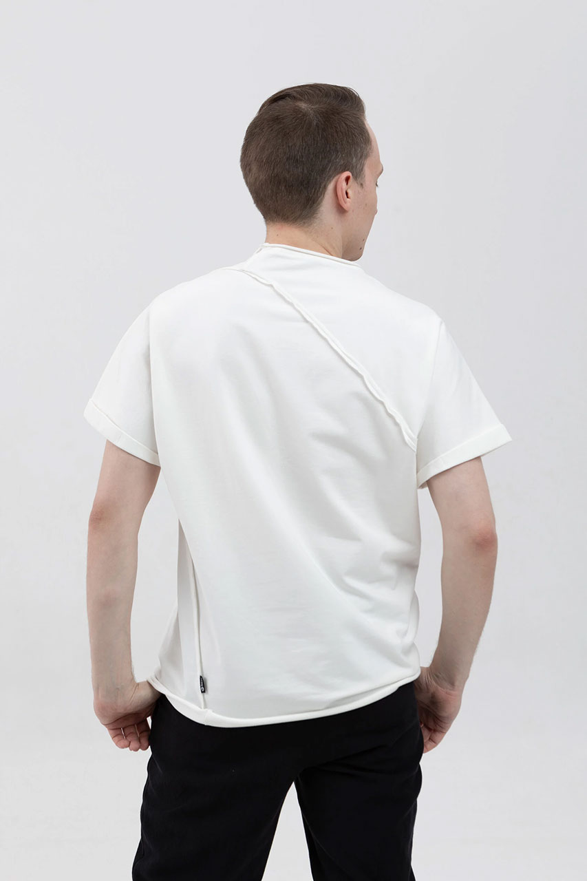 Асимметричная футболка с подвернутыми рукавами белая