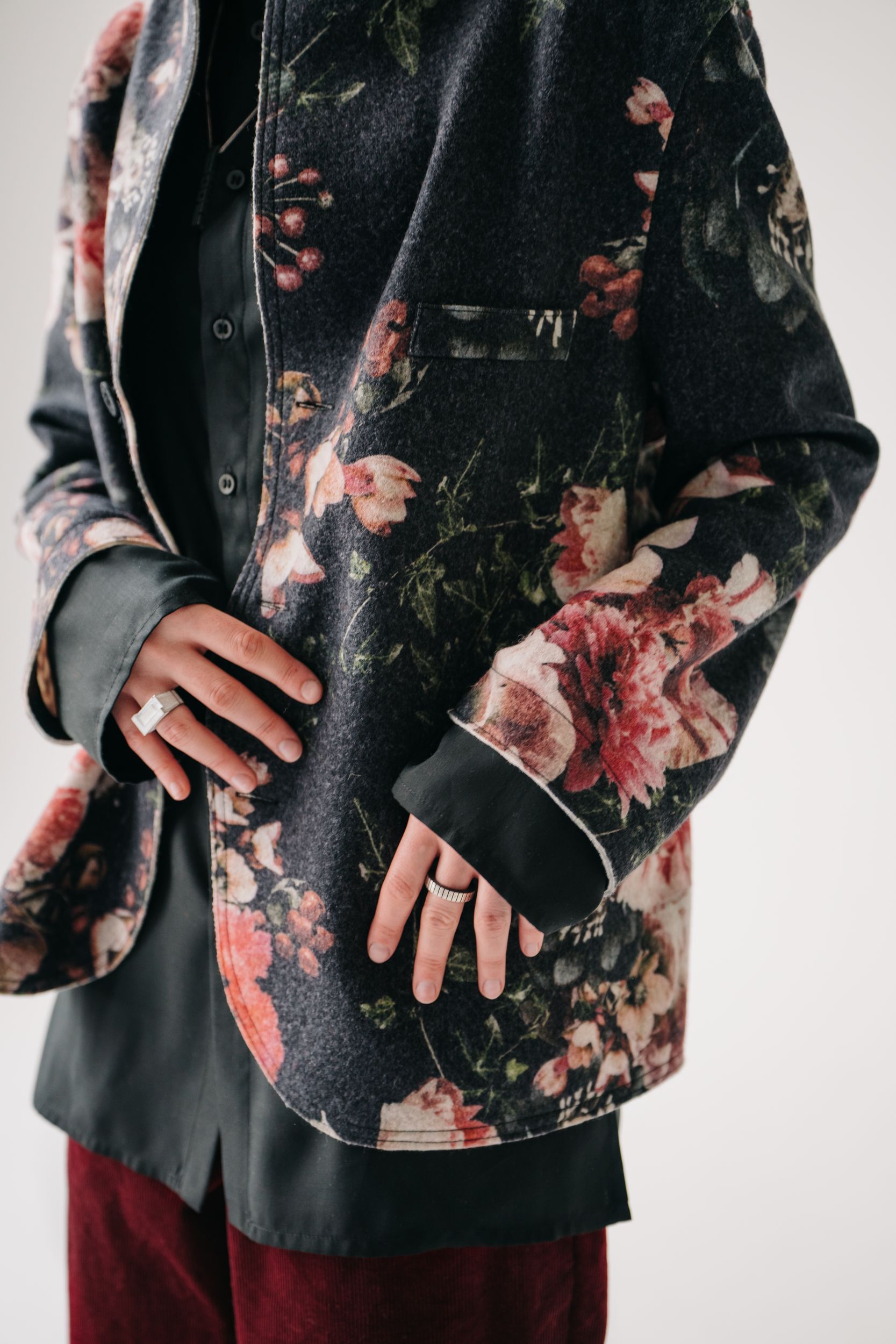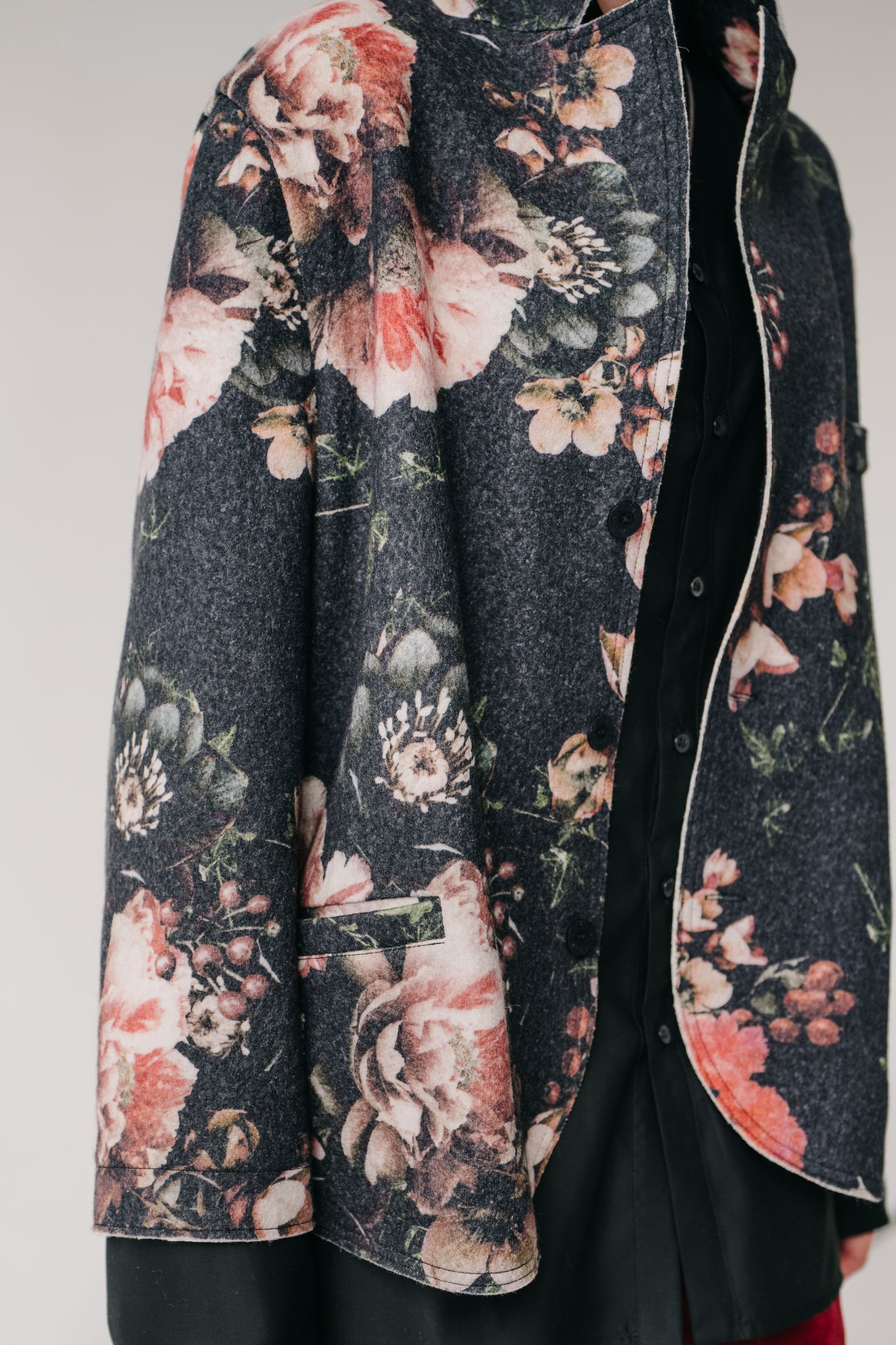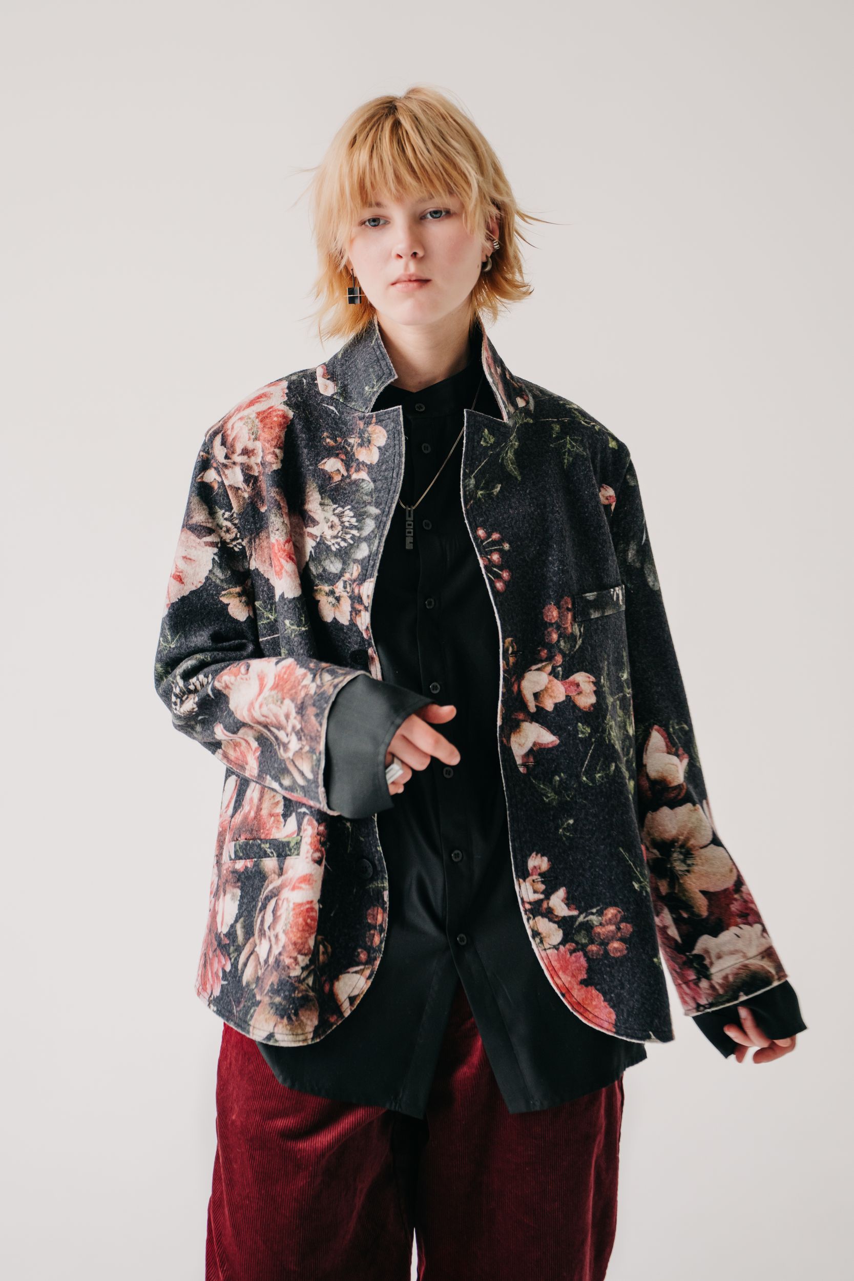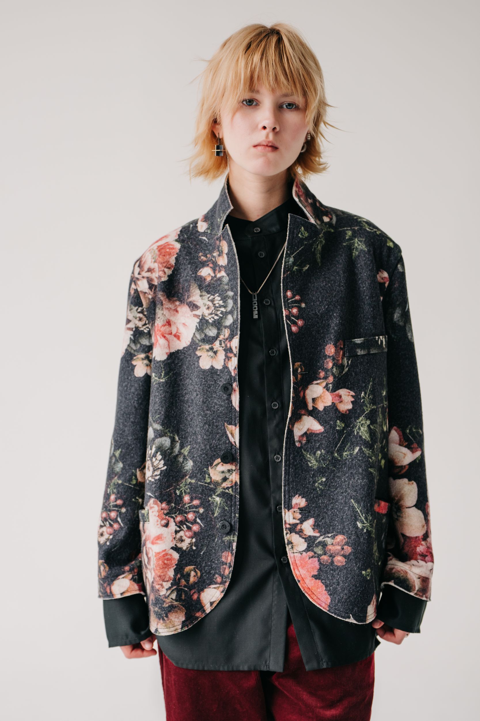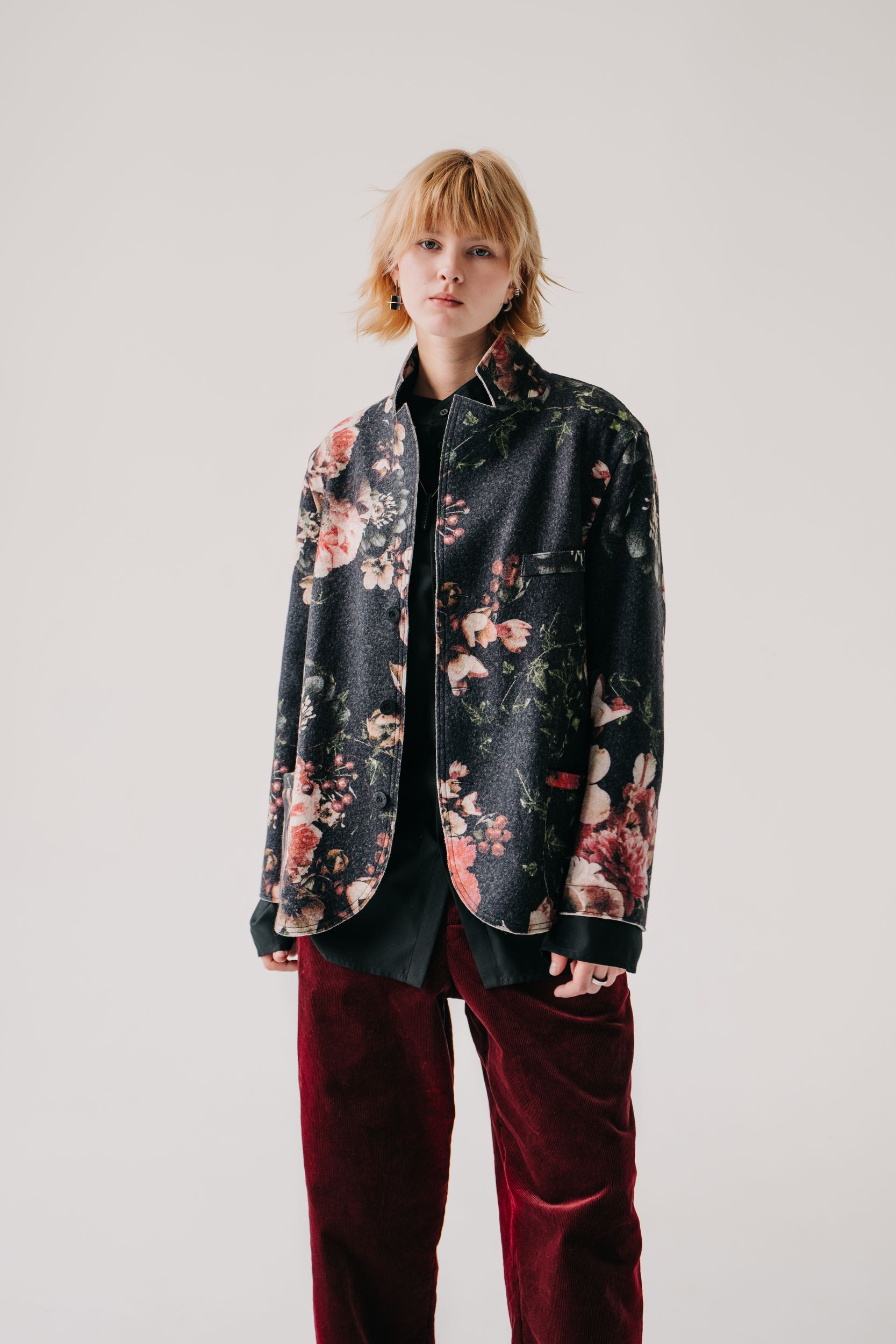 • Свободный женский пиджак Okkervile из натуральной шерсти с цветочным принтом